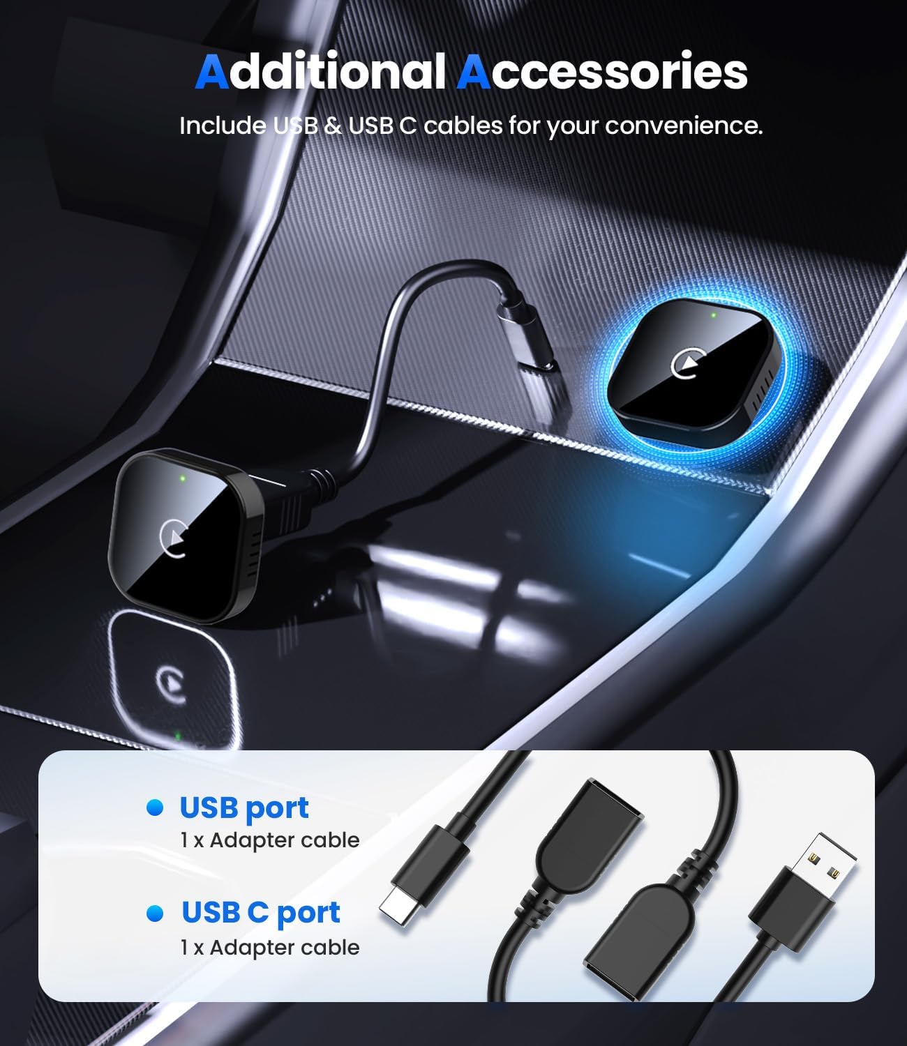 🚗 For Factory Wired Apple CarPlay Vehicles Only – Compatible with cars that already support wired Apple CarPlay. Supports iPhone iOS 10+. Includes USB-A and USB-C adapters for broad vehicle compatibility.