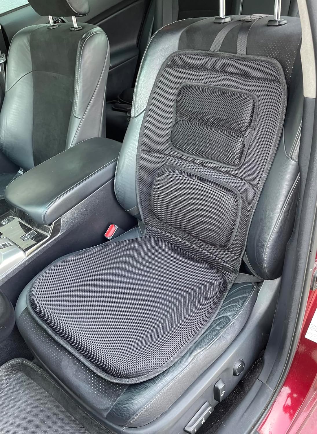First office chair pad that actually workes. With the tektrum elastic pad I no longer have tailbone or numbness in lower legs. With prior chair pads, it was either one or the other. I am pleased. The only drawback, and maybe it’s more to do with my office chair than the pad, is that contrary to the ad it sits a bit warmer than other chair pads I’ve tried. However, it succeeded in removing the tailbone and numbness in the legs issues, which is far more important. I’ll take the trade-off. All other chair pads I’ve tried failed in the more important aspects. Foam ones end up being too hard, or they flatten. Latex ones are expensive and still didn’t help. Memory foam chair pads are miserable. This elastic pad is well worth the money in comparison. And it comes in a nice carry-cover over the actual blue pad shown.