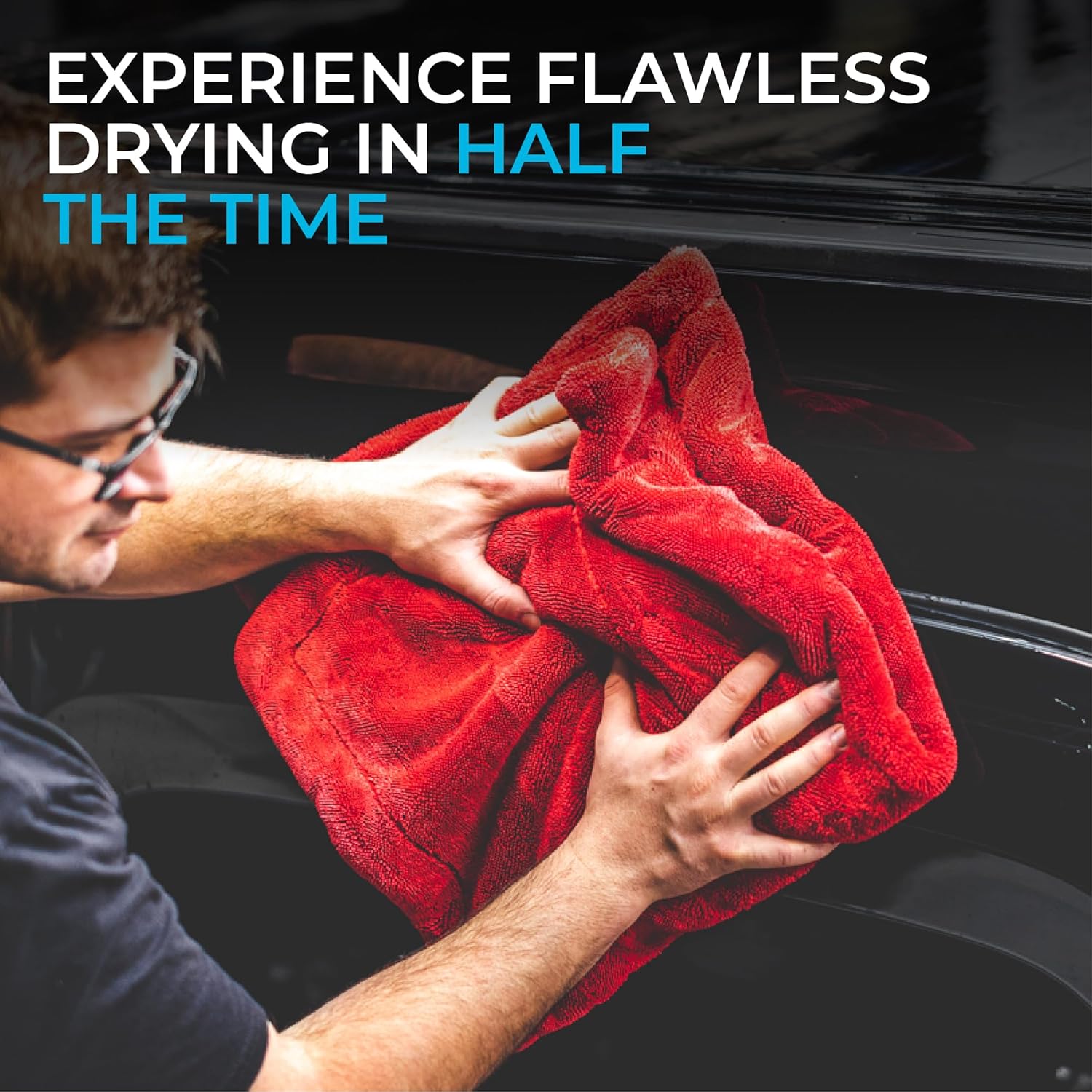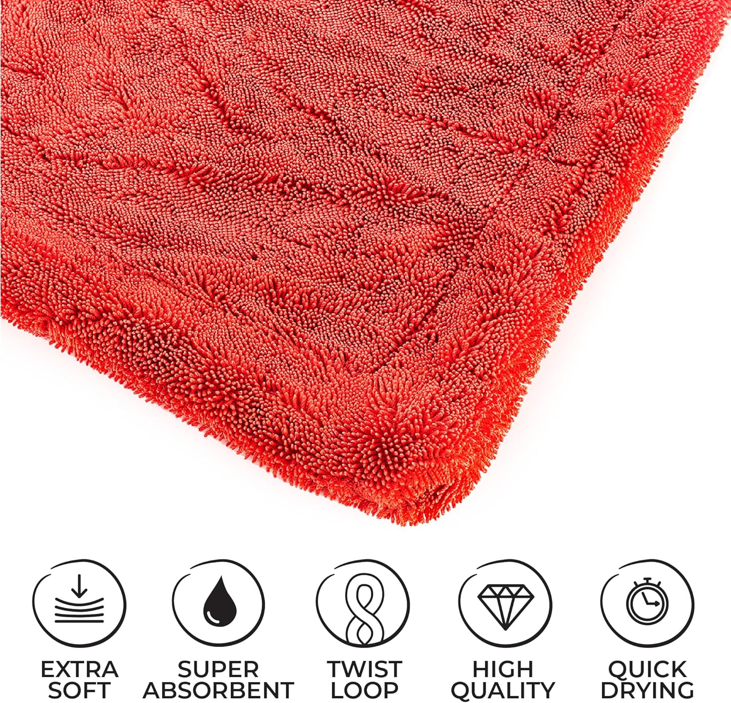 The Rag Company – The 1500 – Heavy Duty Car Drying Towel; Perfect for Trucks, Commercial Vehicles, RVs, Boats, and More; Premium 70/30 Blend Twist Loop Design, 1500gsm, 30in x 30in, Red