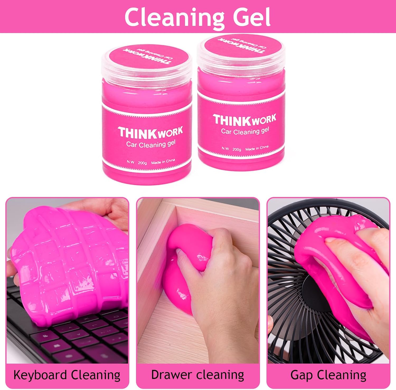 THINKWORK Pink Car Duster Interior Kit, Perfect Car Detailing Brush Kit for Cleaning Windows,Windshield,Dashboard and Air Vents Suitable for All Cars