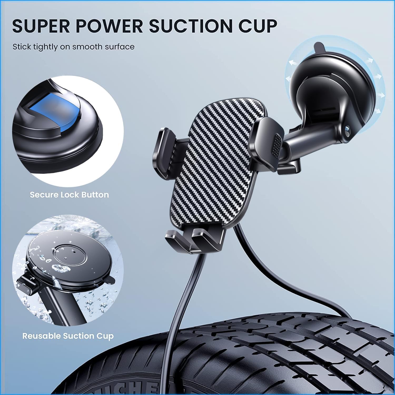 Upgraded 3 IN 1 Car Phone Mount: Phone mount for car is equipped with a stronger suction cup, thinner vent clip, and an innovative support ring for extra support, which can be freely mounted on the dashboard, windshield, and air vent. A good helper for all Dash Mounting Kits Video Installation. Suitable for most cars, pickup trucks, SUVs, trucks, and taxis.