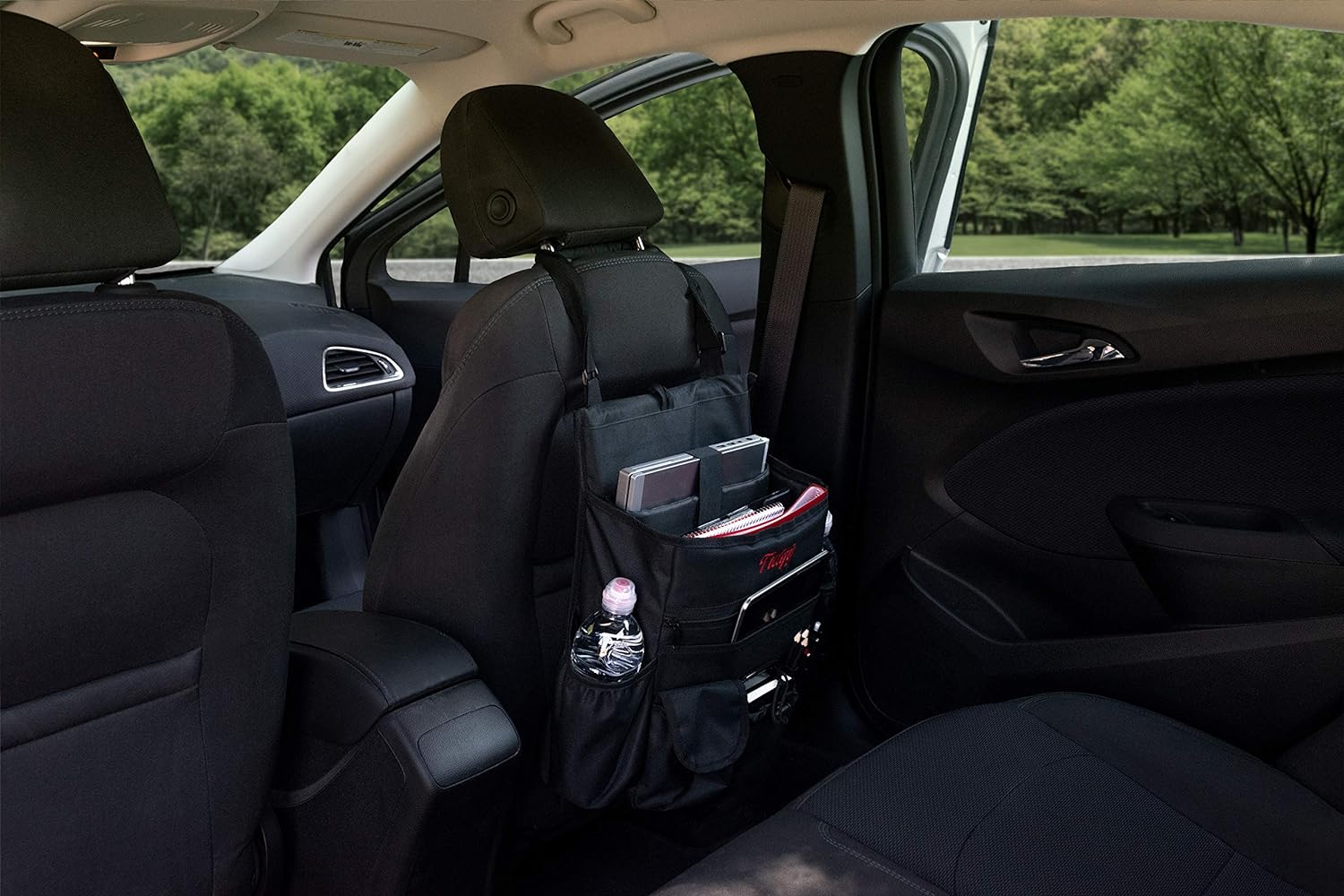 TIDIFY car organizer is larger than most other organizers on the market and provides all the storage space you’ll ever need: * A deep, padded compartment with a hook-and-loop lock for securing and storing even the largest laptop or tablet.