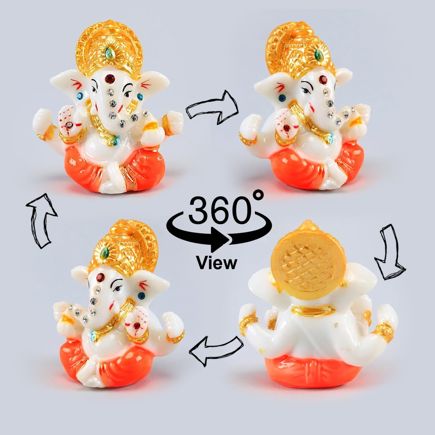 Material & Size: Crafted from high-quality polyresin, this Ganesha idol features fine detailing with a smooth, vibrant finish. Measuring approximately 2.3 inches in height and 2 inches in length, its compact size is ideal for car dashboards, shelves, work desks, or mandir spaces, adding a graceful spiritual touch to everyday décor.