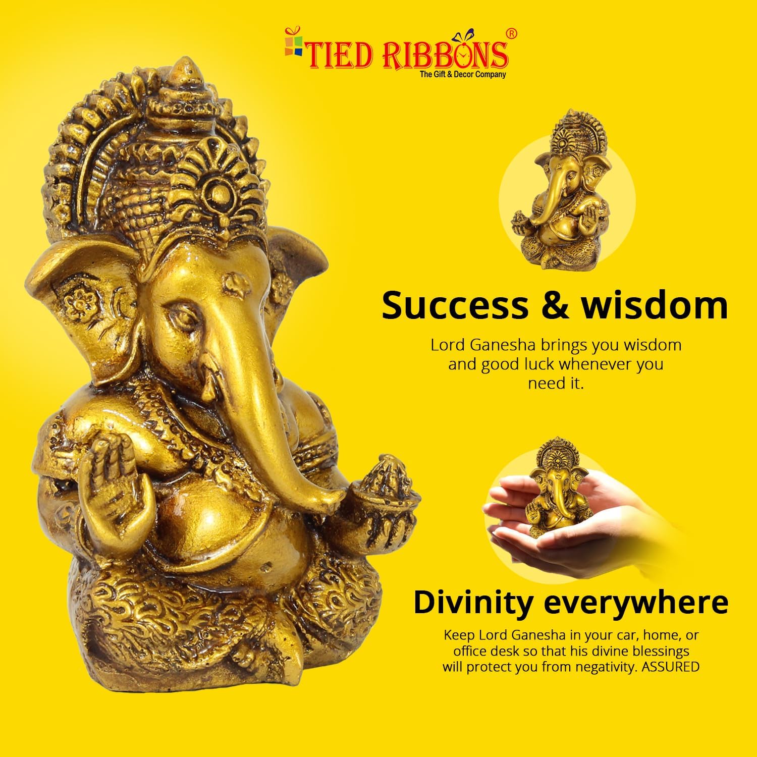 TIED RIBBONS Ganesh Statue for Car Dashboard | Resin, 3.7 inch | Gold Ganesha Statue for Home, Office, Desk, Pooja | Baby Ganesha Statues | Pongal Decorations | Indian Decor