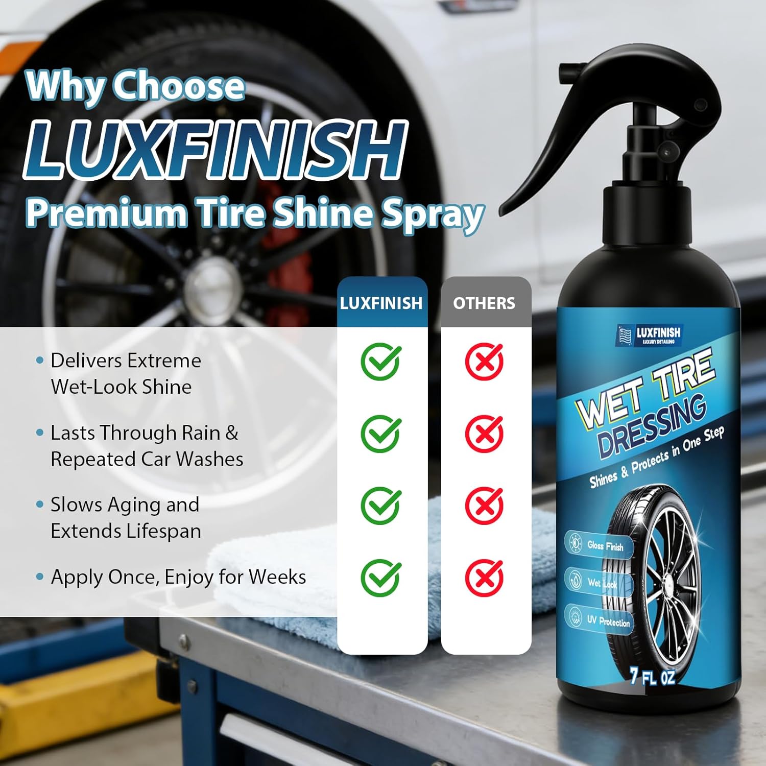 Tire Shine Spray – High Gloss Wet Look with UV Protection, Deep Black Finish for Tires & Trim, Long Lasting Car Tire Dressing for Cars Trucks SUVs Motorcycles RVs, 7oz