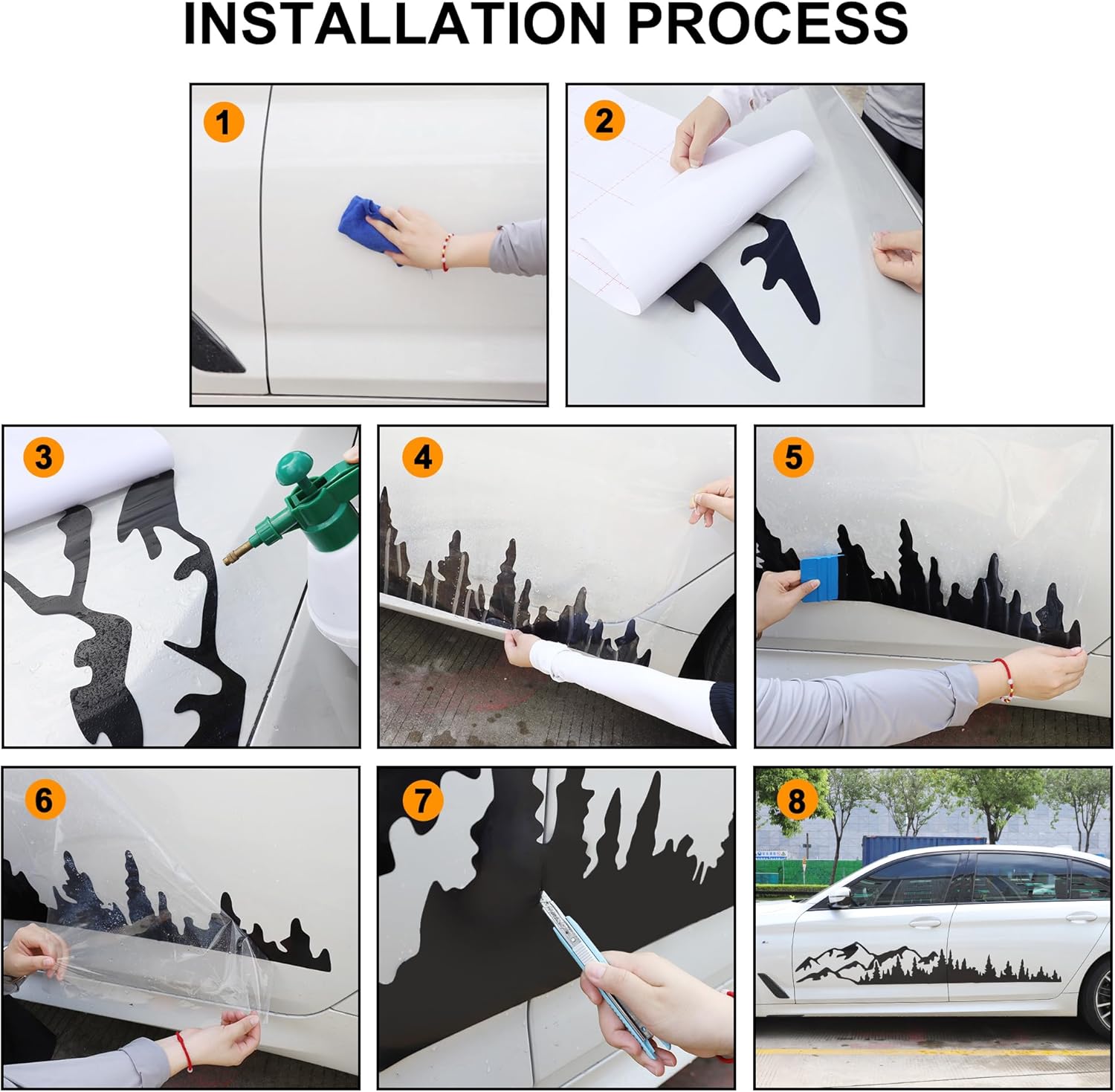 ✔How to Install – 1.Wipe off the dust from the car and remove the white bottom paper, 2.Spray a large amount of water (soapy water) on the car and the sticker, 3.Scrape off excess water and air bubbles while installing. (Tip: You can repeatedly lift the sticker and spray water until the sticker fits perfectly.)