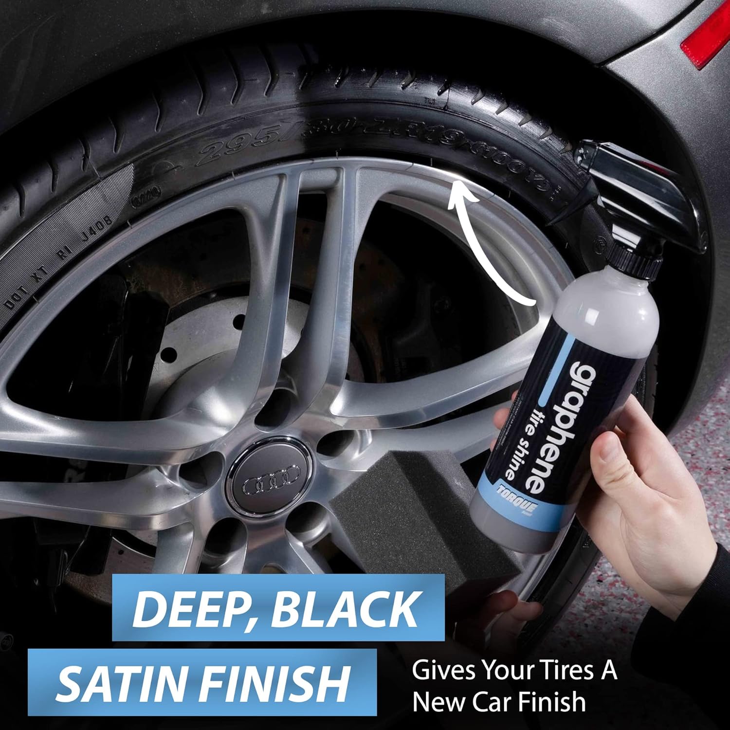 Torque Detail Graphene Tire Shine Spray – Long Lasting Deep Black Shine with No Sling – Graphene Protection Against UV Rays, Fading & Yellowing