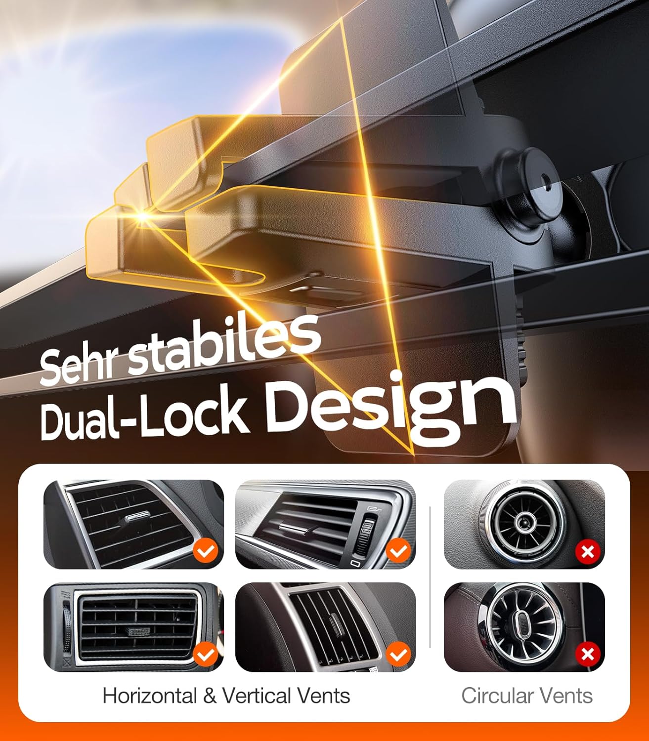 ▶[2026 ENHANCED VENT CLIP]: You can screw the nut to fix the clamp freely, the tighter you screw, the sturdier it will be! Its two small arms are just enough to press against the upper and lower vent blades to form a stable triangular structure and lighten the load on the middle one, with no damage to your car. This clip more than 10X sturdier than normal ones. It fits perfectly for your car no matter what the thicker blades vents or vertical ones.