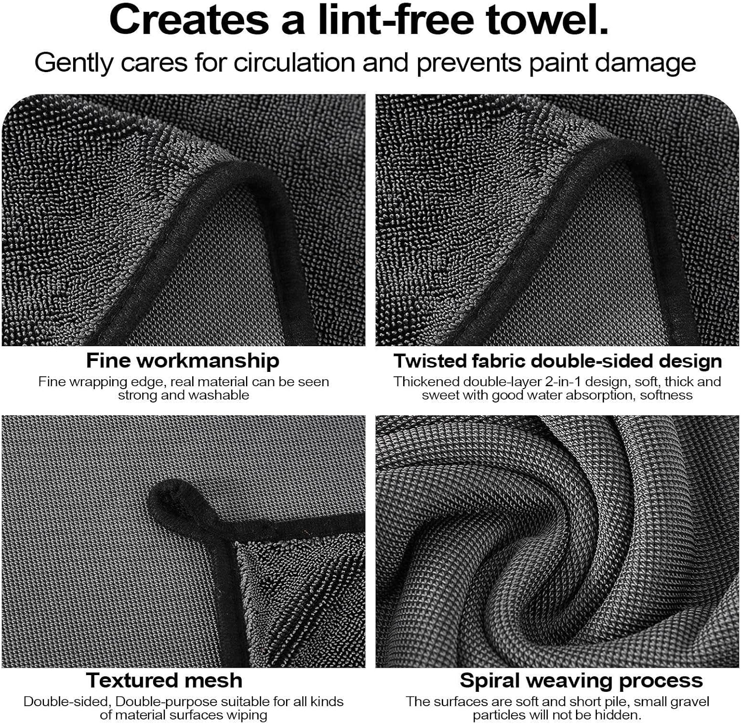 Innovative Technology: By using twisting technology, our car wash towels absorb water faster than ever before. The fibers are twisted into a pigtail formation for excellent water absorption