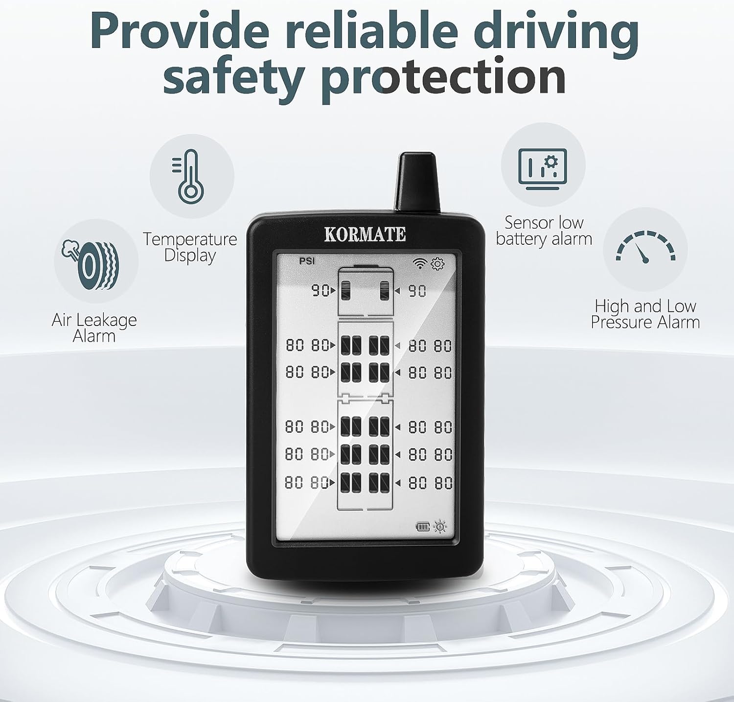 Our company has been engaged in tire pressure monitoring system for 12 years. Kormate Monitor Large Vertical LCD display,All tires display simultaneously. Kormate’s operation and installation are also very simple.