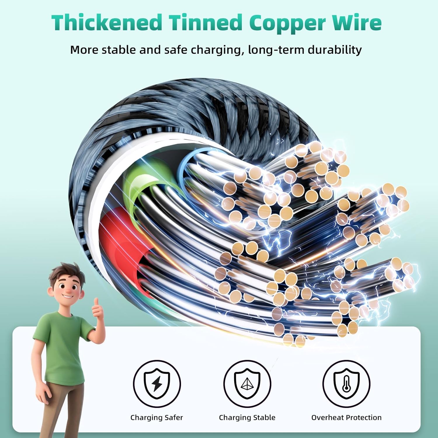 【Durable High Quality Material】Crafted with high-density braided nylon and reinforced strain relief, this charging cords for multiple devices resists over 40,000 bends. Aluminum alloy connectors & Thickened Tinned Copper Wires enhance durability and heat resistance—ensure charge your device safety and longevity