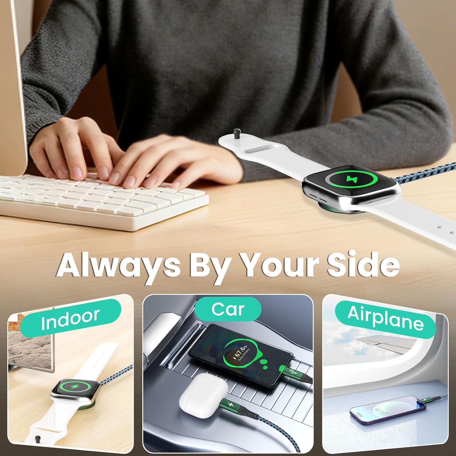 【3 in 2 Multi Charging Cable for iPhone, iWatch & Type-C Devices】One iWatch cable = six charging cables. The upgraded 3 in 2 USB A/USB C multi charger cable including iWatch/iOS/Type-C Port, which support charging for most devices available on the market and work seamlessly with all the latest devices, there’s no need to carry a whole bunch of charging cords when you go out, the compact design makes it easy for you to charge anywhere (Note: Please use a 20W adapter)