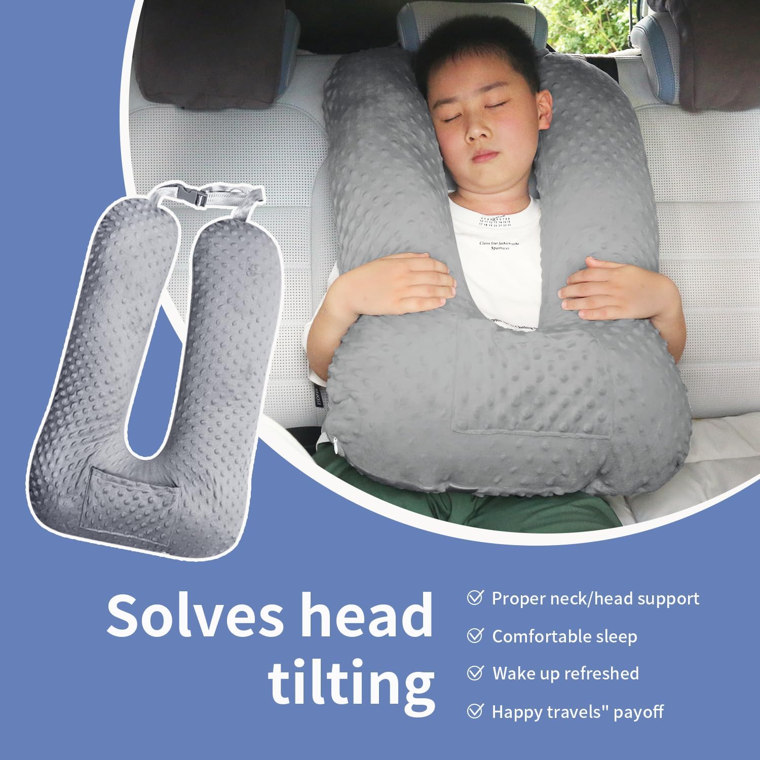 [Car headrest pillow provides secure support] This car pillow is designed to prevent the head from tilting and provide stability. It can support your child’s head in any position, reducing potential safety hazards during long – distance trips.