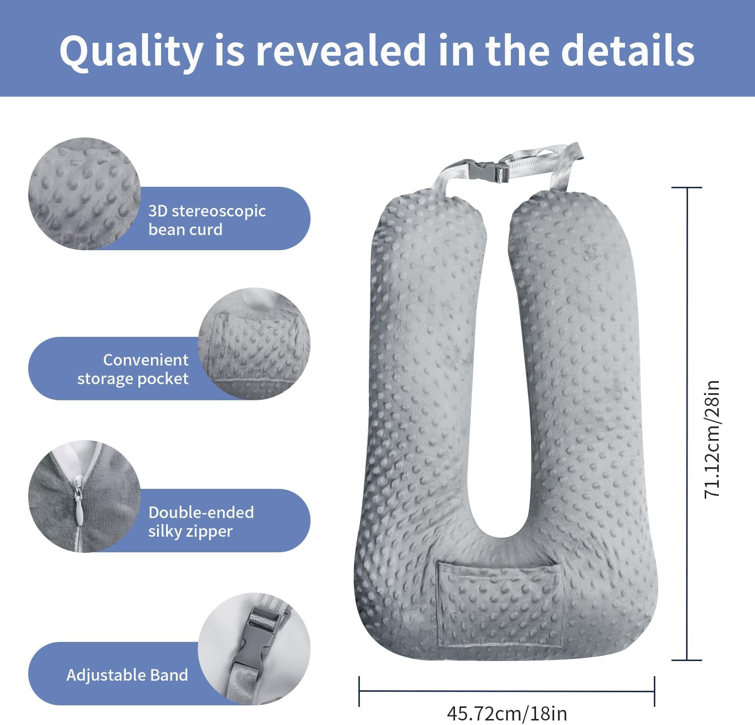 [Convenient Storage Pocket] This unique travel body pillow comes with a phone pocket, ensuring that your essential items are safe and easily accessible. It prevents your devices from falling into hard – to – reach places during the journey.