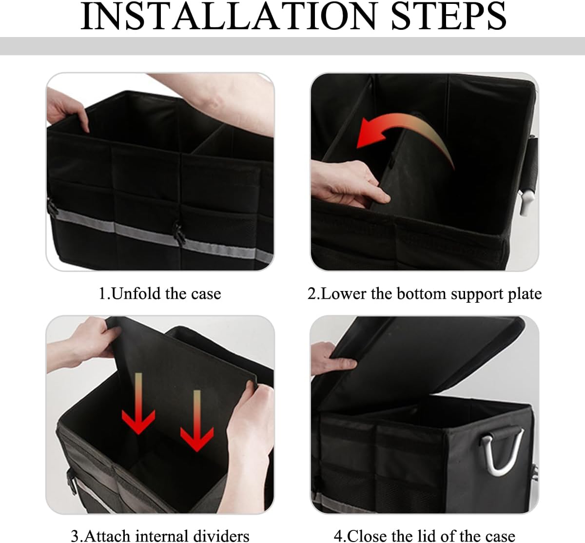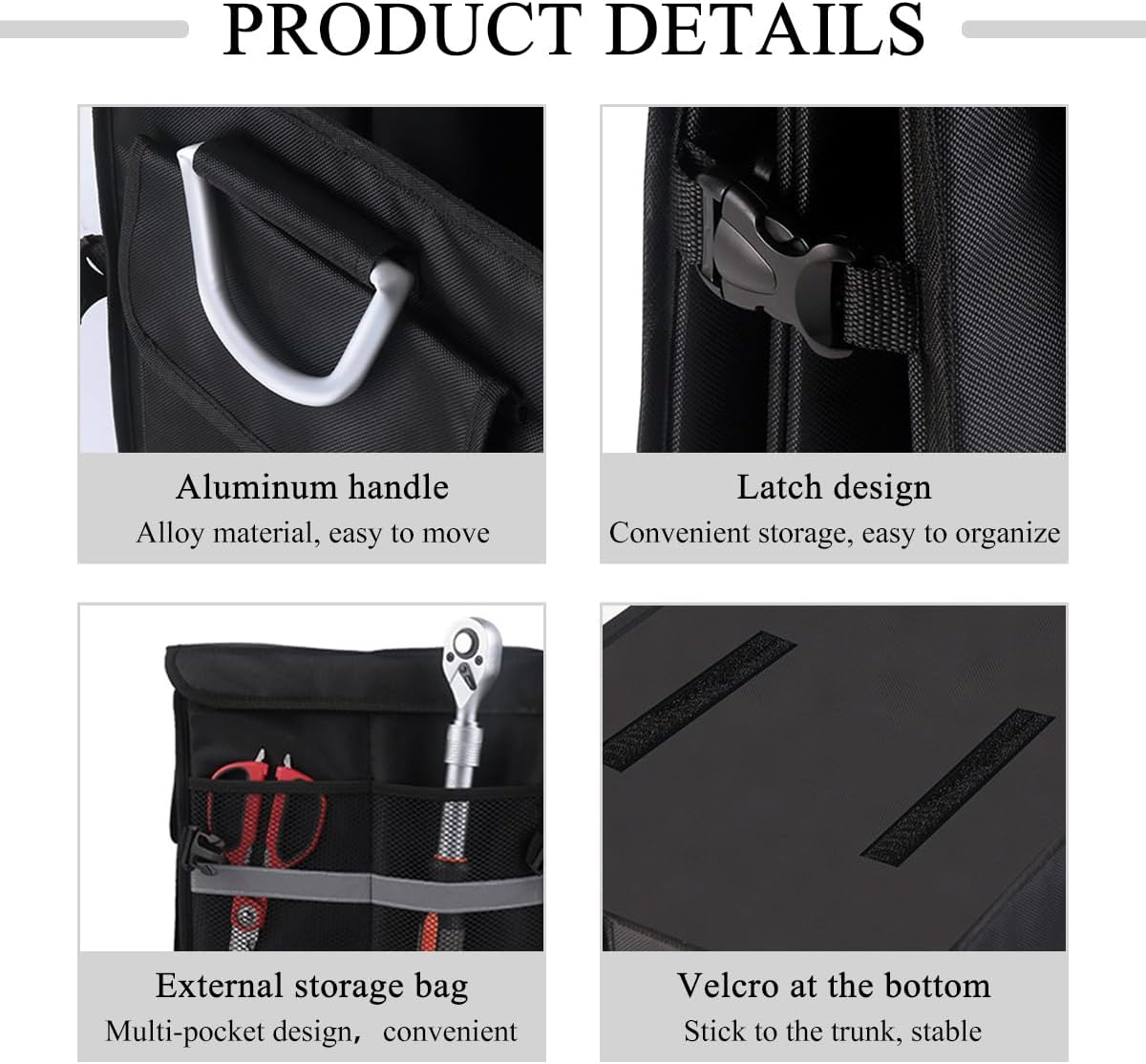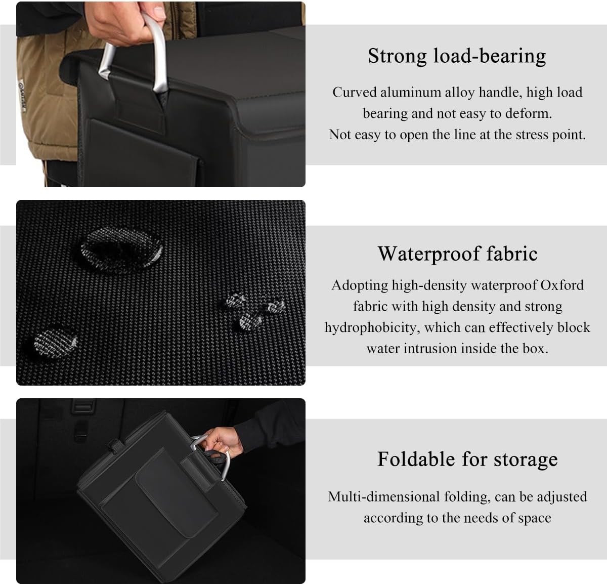 【Durable & Portable】: The trunk organizer features dual aluminum handles with reinforced stitching, which allows for heavy-duty use and easy portability. The included base plate adds stability to the bottom, ensuring it holds its shape and supports your items during transport.
