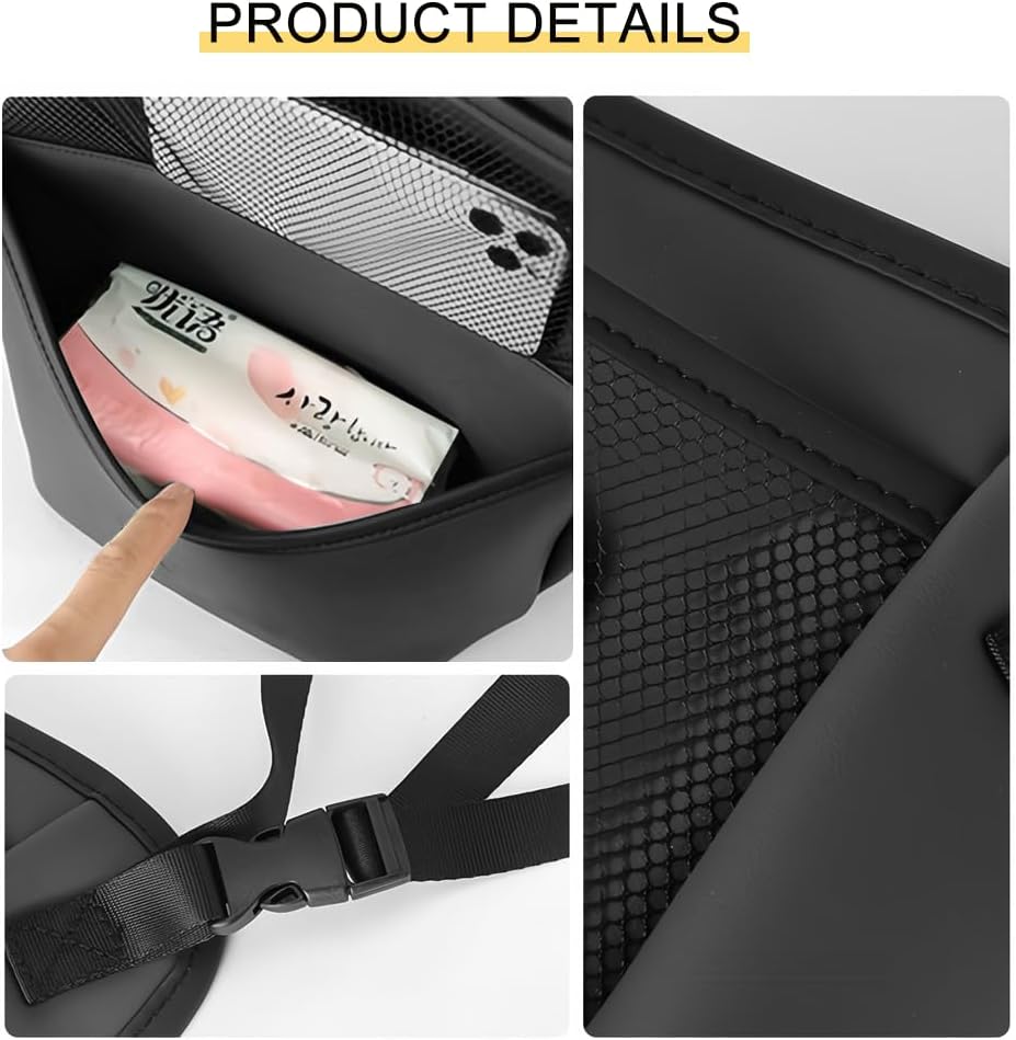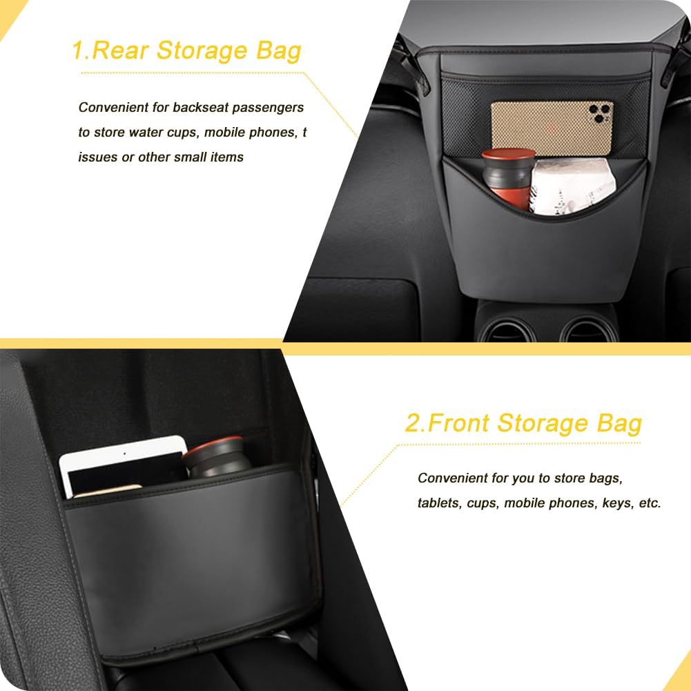 MULTIFUNCTIONAL STORAGE. Front and rear storage bags are included, allowing you to organize the items in the car neatly. The front space of the large storage bag can store small items such as handbags/umbrellas/gloves/shopping, and the back pockets can store small items such as mobile phones/tablets/purses/magazines/perfume/lipsticks.