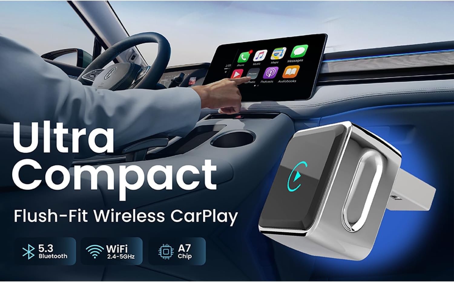 DUAL-BAND 5GHz WIFI = SMOOTHER DRIVING: Built with 2.4GHz + 5GHz dual-band WiFi and using Bluetooth 5.2 to reduce interference and keep wireless CarPlay stable and responsive. Enjoy smoother audio, faster response, and fewer dropouts versus single-band adapters.
