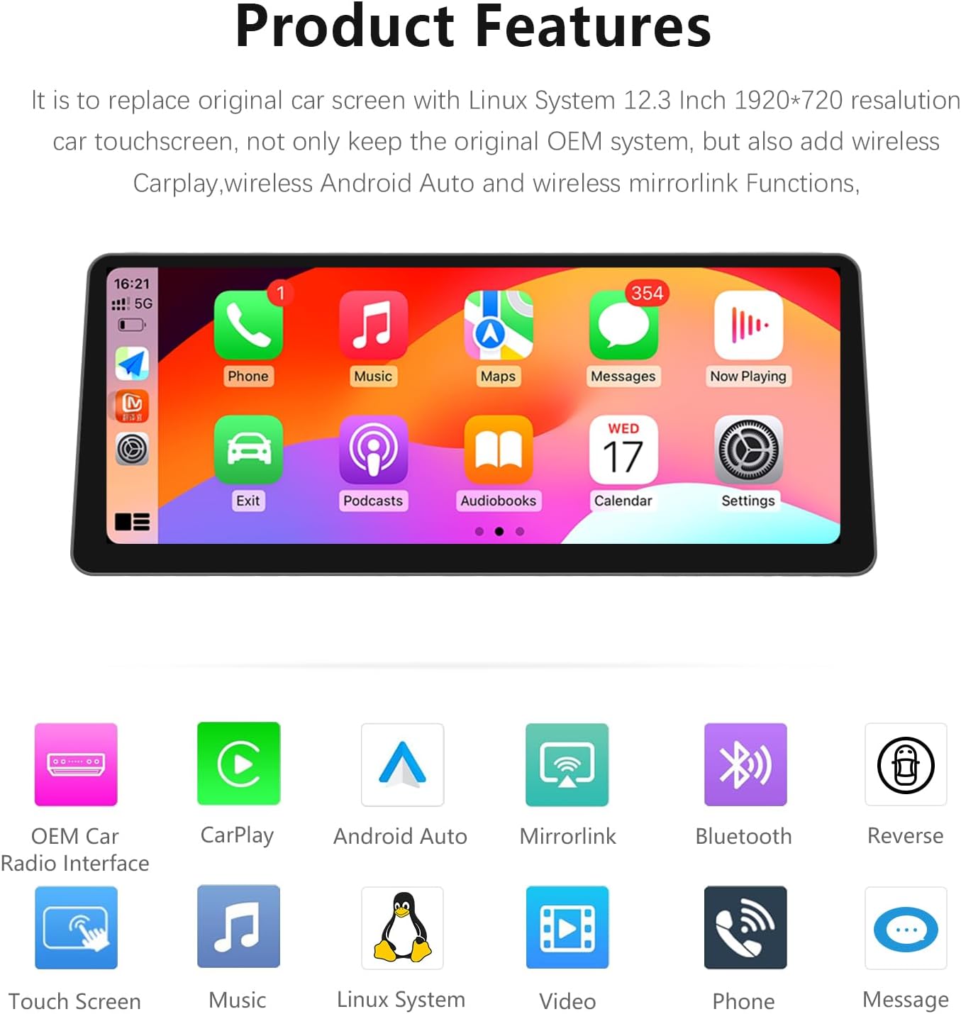 Dual system,One click switch between Linux system and original car system,The upgraded capacitive touch screen retains all original functions and adds Linux system features, greatly enhancing your experience. This includes the original car radio, amplifier function, factory steering wheel control, original car mouse knob, display speed, fuel level, oil pressure, safety warning, and original reverse camera. No software changes will be made to the vehicle’s control unit.