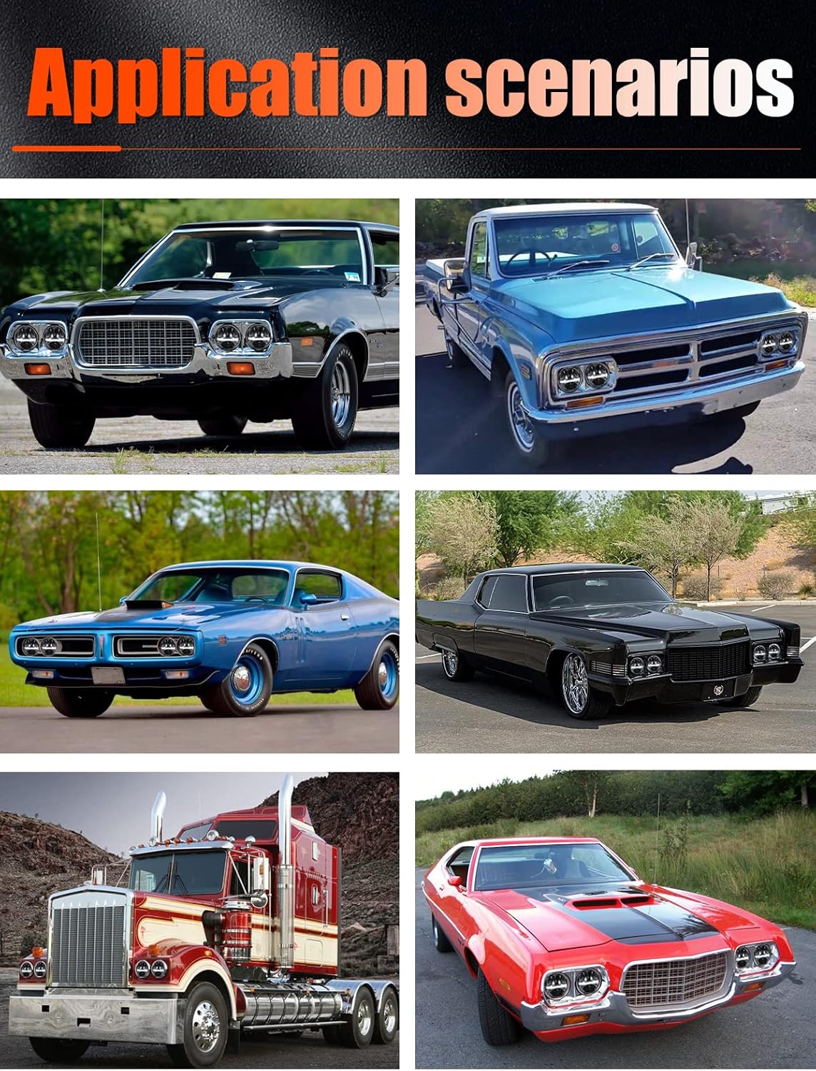 🚗Application: These 5.75″ Headlights fit with H5009 / H5006 / H5506 / H5001 / 4001 / 4004 / H5010 / H5501/ H4001 Round Sealed Beam Headlights. Compatible with Corvettes Chevelles Chevy Trucks, Compatible with Ford Gran Torino, Compatible with Peterbilt Semi 349 359. Not only this, which original bulbe is a standard 7″ light bulb, it will be fit. Pls check the size of your vehicle bucket