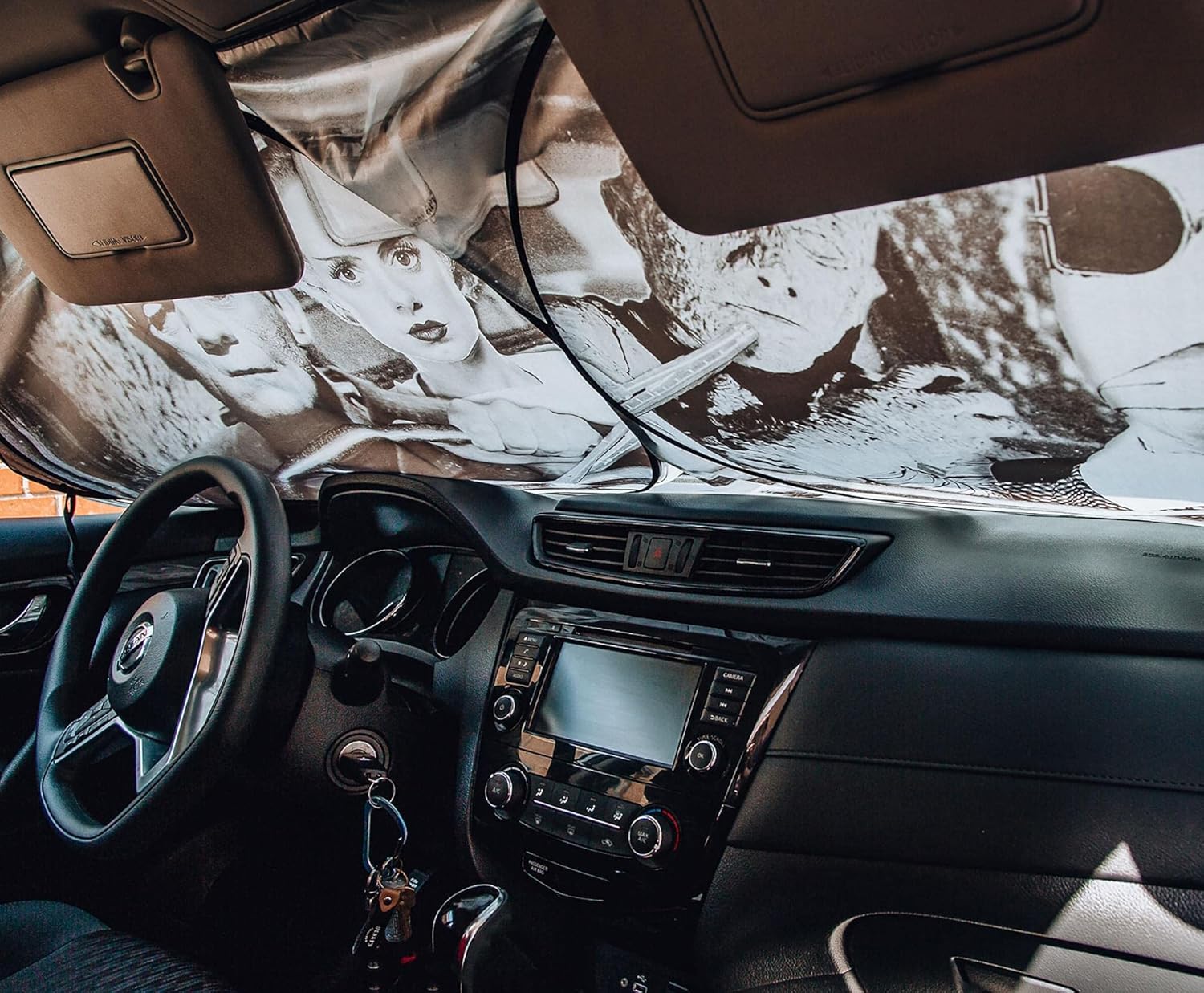 Iconic Design: This sunshade makes it look like Frankenstein’s monster, the Invisible Man, the Mummy, and the Bride of Frankenstein are taking your car out for a joyride. The classic styling features a black-and-white design.