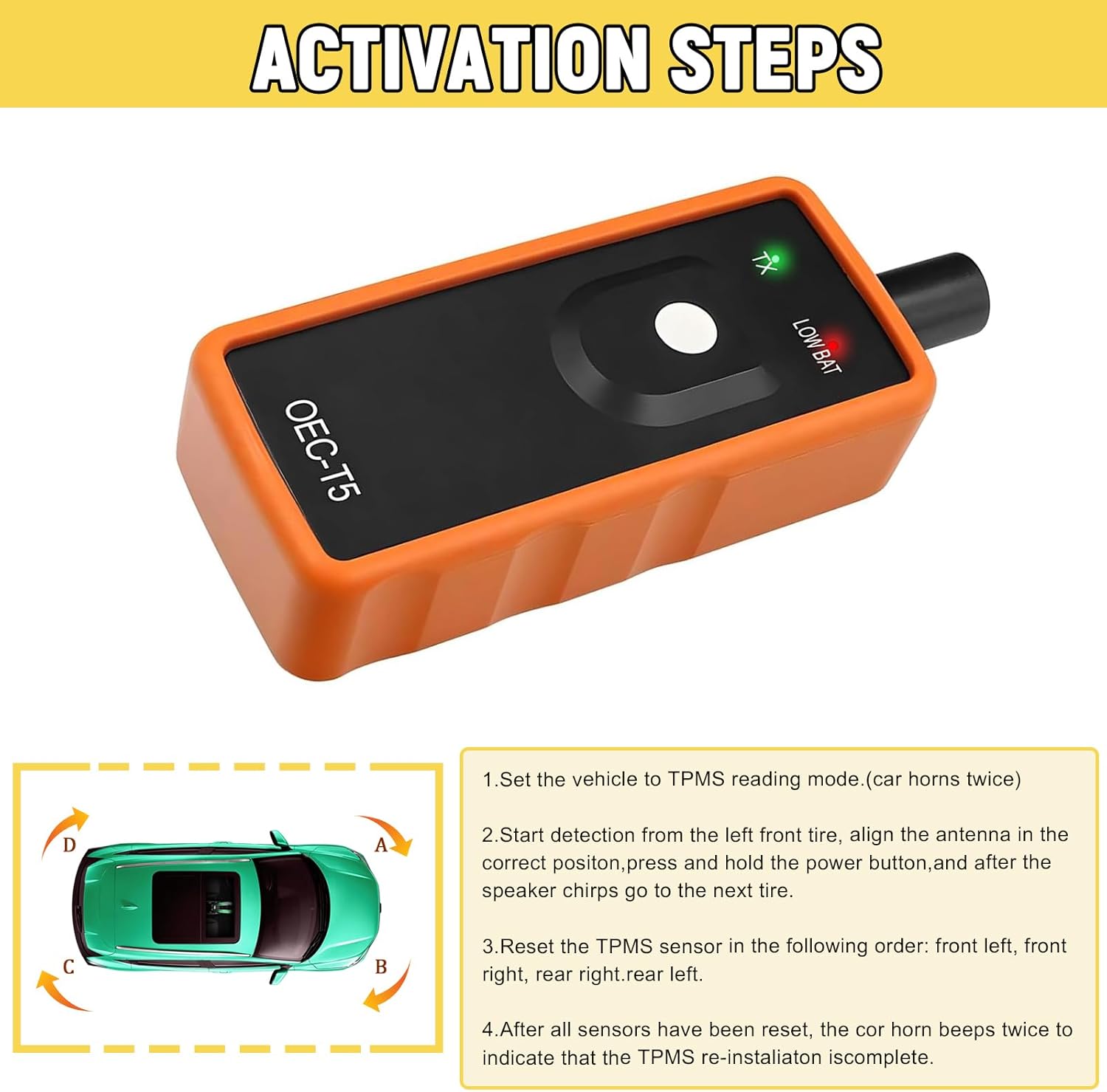 Quality Material: The TPMS tire pressure monitor sensor features a rugged ABS plastic housing with dustproof, water-resistant, wear-resistant, and insulated properties, ensuring safe and long-lasting reliability. The TPMS reset tool delivers rapid response and powerful performance, capable of accurately activating sensors within one to two minutes.