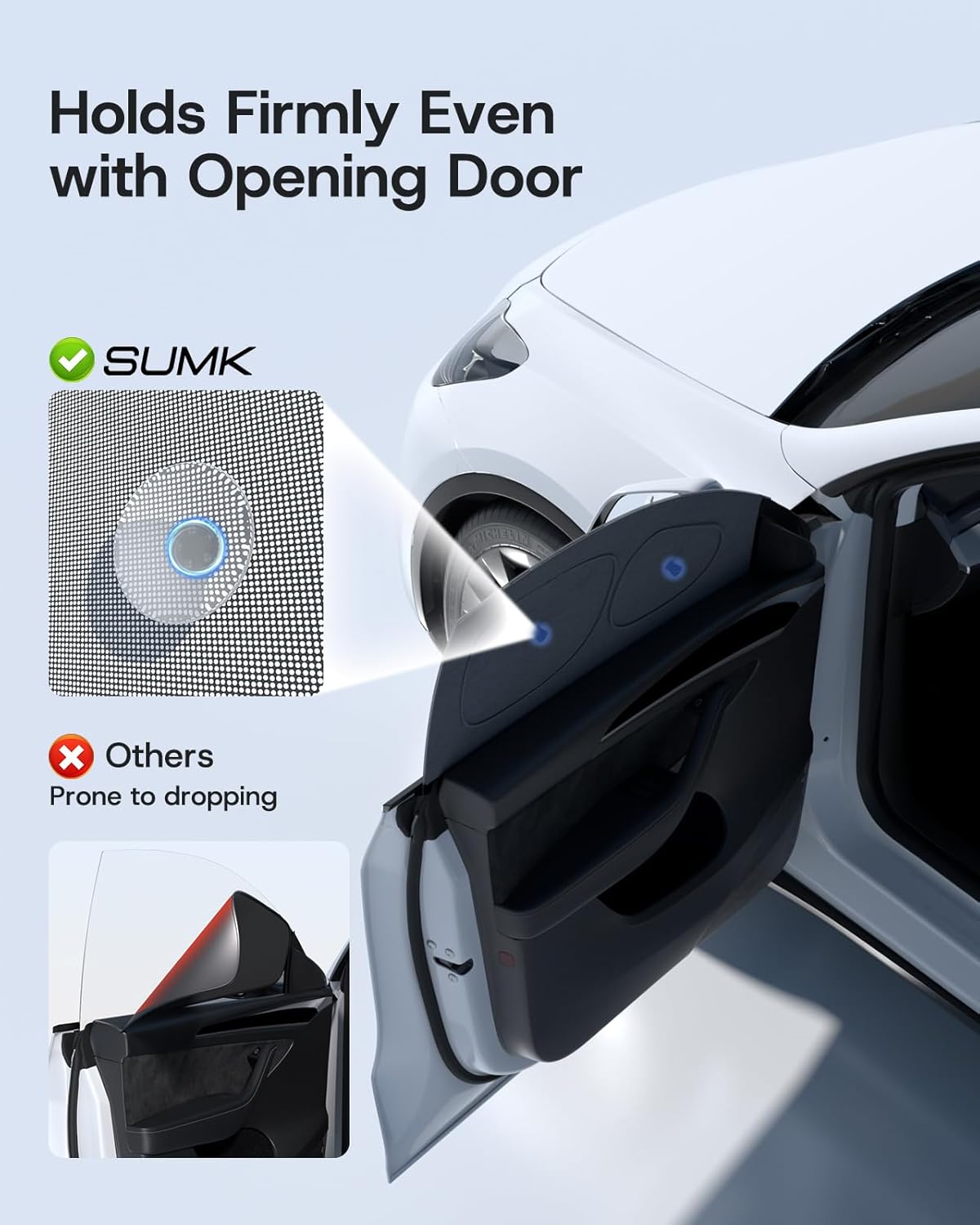 【Advanced Dual-Layer Sun-Blocking Technology】 SUMK sunshade accessories constructed with a premium ice-crystal reflective outer layer and a dense inner non-woven fabric, these shades provide ultimate heat rejection and UV protection. They effectively preserve your Model Y’s interior by preventing sun damage, fading, and cracking on upholstery and dash components
