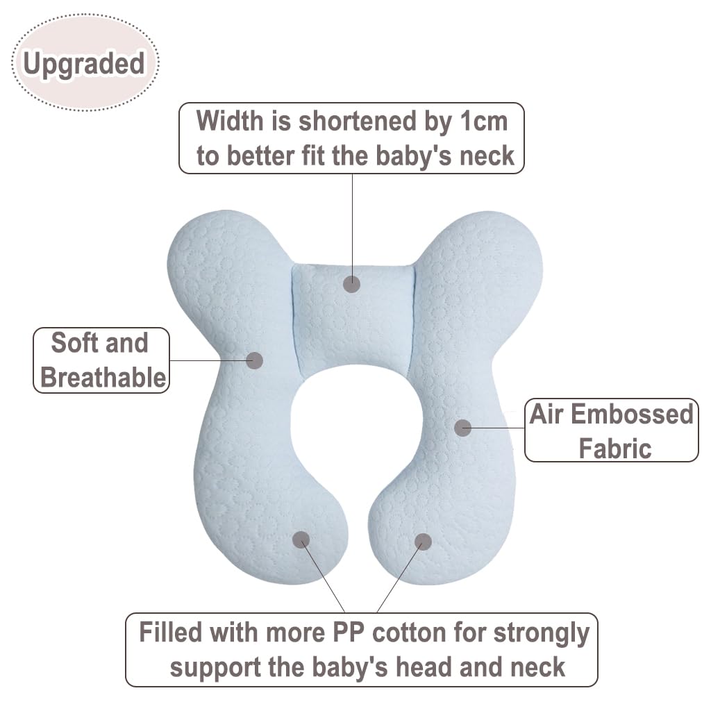 Upgraded Baby Head Support Pillow for Newborn Toddler, Soft Cotton Baby Travel Pillow for Car Seats and Strollers, Blue