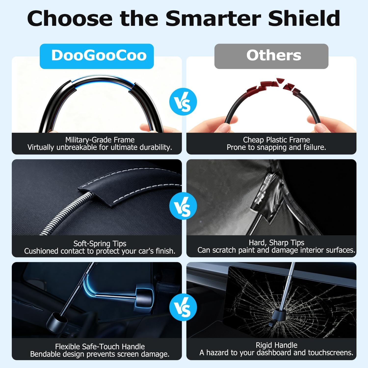 This Doogoocoo Windshield Sun Shade is hands down one of the best I’ve used! The ice-crystal cooling fabric really makes a difference — my dashboard and steering wheel stay noticeably cooler even on hot, sunny days. It’s clear this shade was designed to maximize heat reduction and protect the interior from sun damage.The 100% UV block and UPF50+ rating give me peace of mind knowing the sun’s rays aren’t baking my car or fading the upholstery. It fits my windshield perfectly and stays in place thanks to the sturdy construction and proper sizing.It’s super easy to install and fold down when not in use, and the upgraded material feels durable — I expect it’ll last through many seasons. Stylish design too!Highly recommend if you want real heat protection and long-term sun defense for your vehicle!