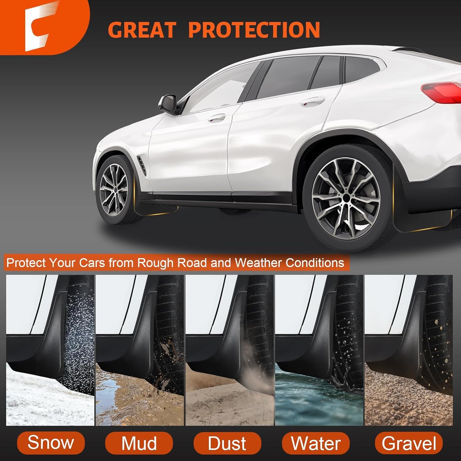 Upgraded Durable and Performance: Made from high-quality solid TPE, these splash guards are both safer and more durable. They are waterproof and rust-resistant, maintaining reliable flexibility under various temperature conditions. As 2024 f150 mud flaps, they help resist impact damage and minimize the risk of cracking or deformation, providing stability on different road surfaces and in various weather conditions.