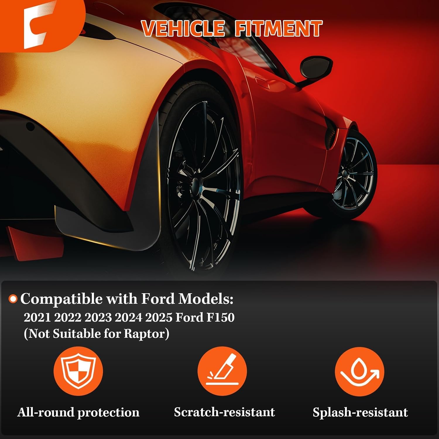 Compatibility: These mud flaps for trucks are specially designed for Ford F-150 2021-2026 models. They are customized to match the original car model, ensuring perfect compatibility with your Ford F150. To guarantee the right fit, please confirm your car’s model before placing an order.