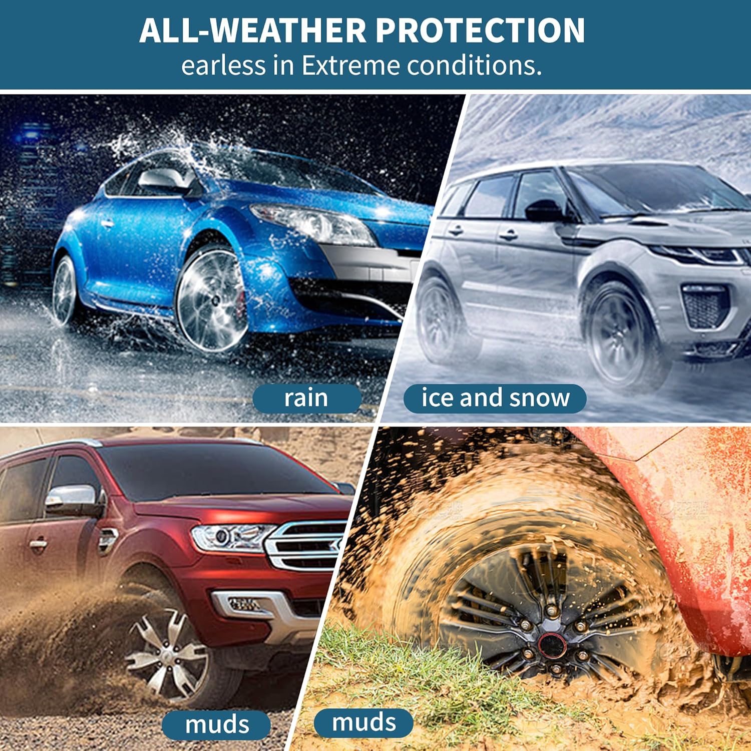 ALL-WEATHER PROTECTION:No matter how bad the weather, our mud guards are designed to protect your vehicle from snow, dirt, salt, sand, and damage by blocking mud and debris from splashing onto the vehicle’s surface, keeping it looking perfect.
