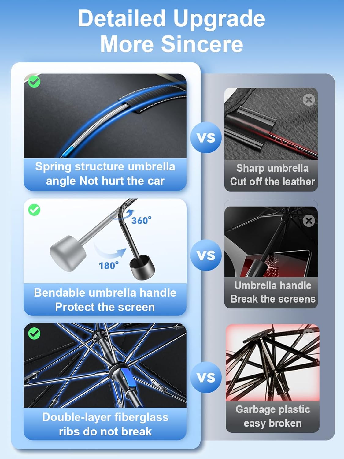 【Military-Grade Durability】Made of military-grade materials and spring-reinforced premium leather legs, this sunshade can withstand the rigors of daily use while providing excellent durability.