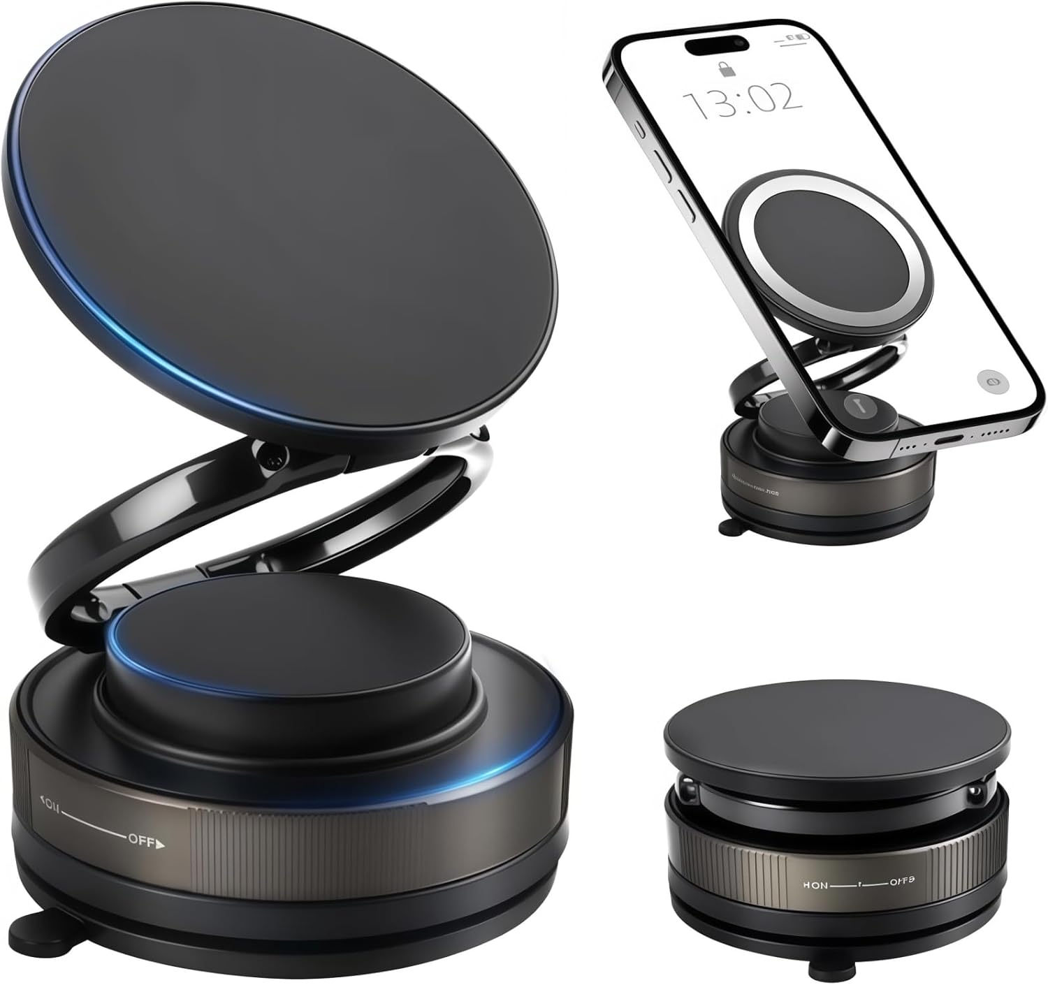 I picked this up because I wanted a cheap phone mount I could move between the car and the gym without dealing with adhesive pads. Although it comes with one if your dashboard has the bumpy textured plastic. The suction cup grabs hard on smooth surfaces and it’s stayed put for me on a windshield and a mirror, even with some bumpy driving. The magnetic hold is convenient since you can just snap the phone on and off one handed, and the ball joint makes it easy to get the angle right for maps or watching something. I wouldn’t take the “96 lbs” claim too literally, but the grip does feel stronger than the typical small suction mounts, I have a foldable phone with a case which makes it heavy and bulky and had no issues so far. Overall it’s a solid budget mount if you like MagSafe style convenience and you’re using it on a clean, smooth surface.