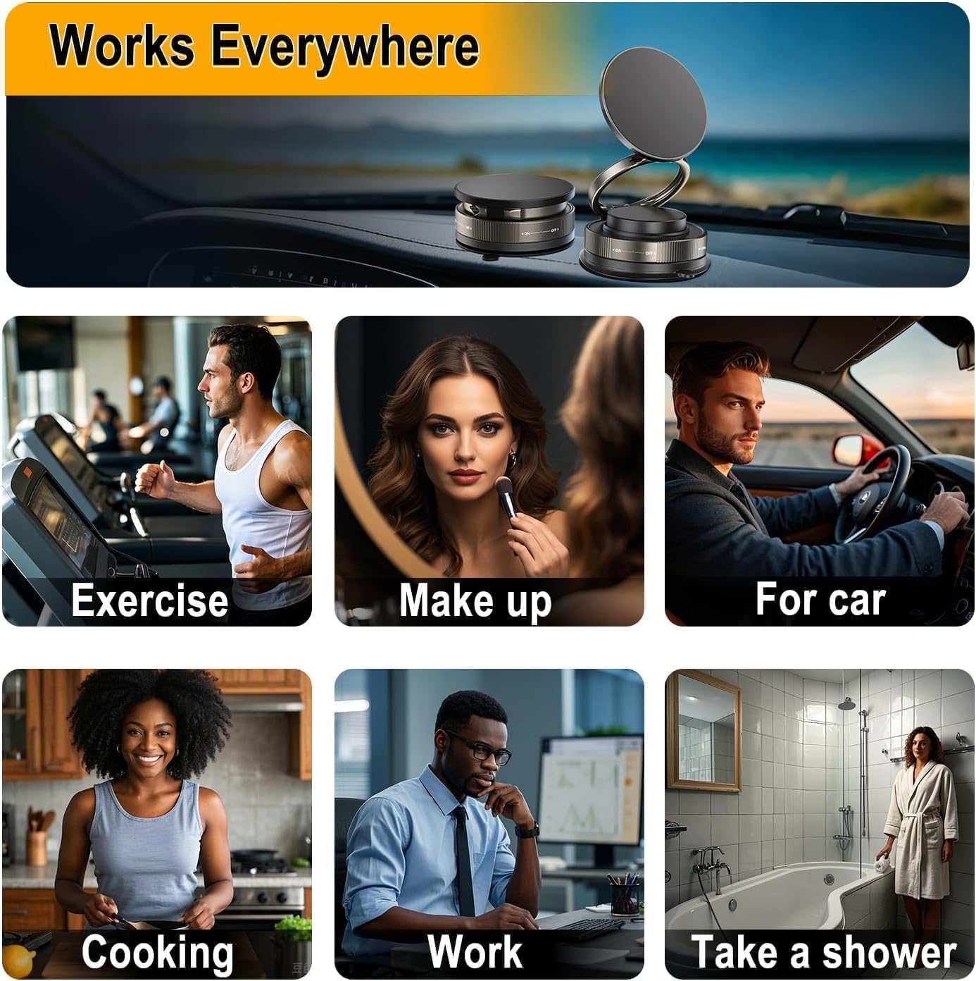 POWERFUL 96LBS SUCTION: Upgraded vacuum suction cup technology provides ultra-strong 96-pound holding force that securely mounts to windshields, mirrors, gym equipment, and smooth surfaces