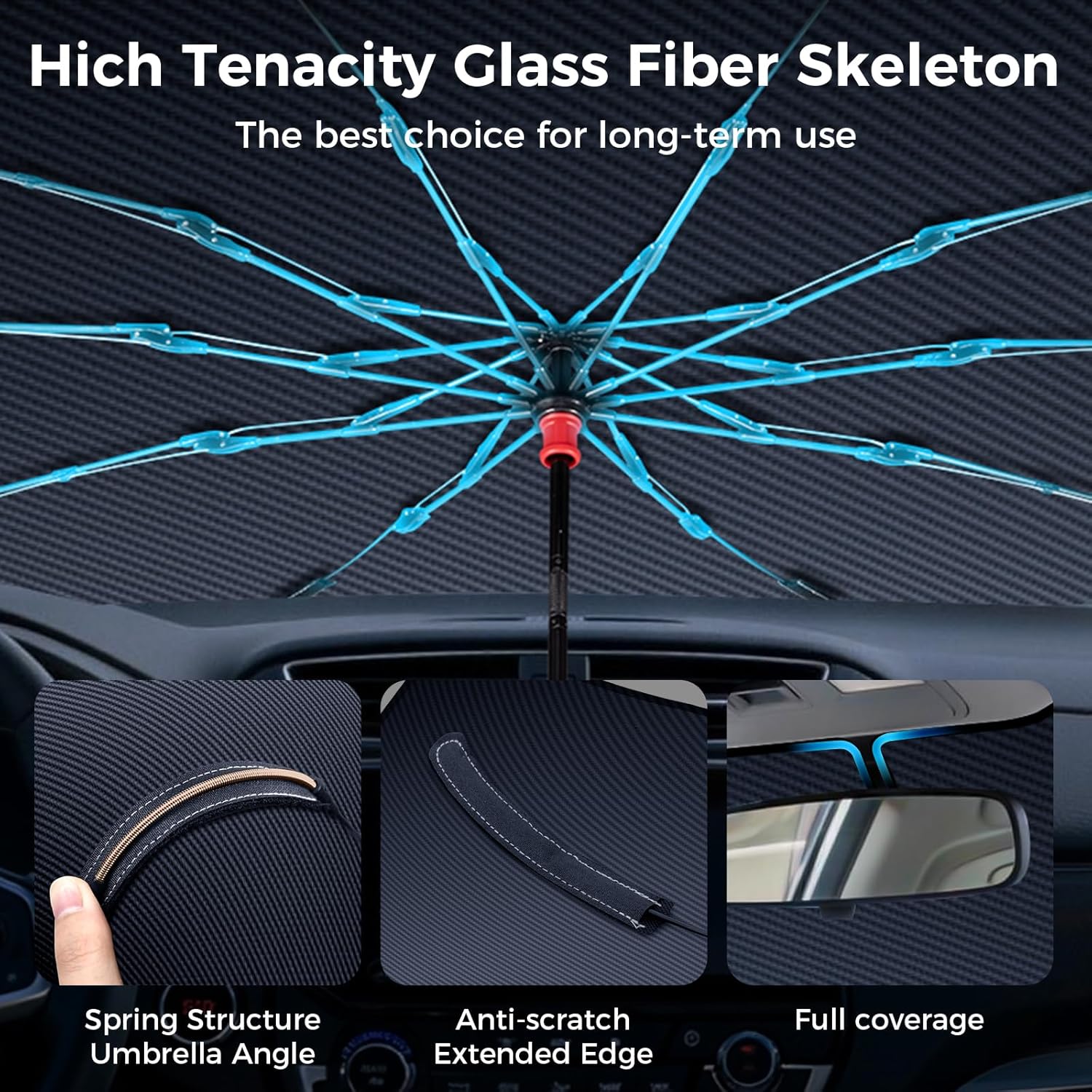 Built Tough for Daily Use: No more flimsy shades that fall apart. Constructed with tear-resistant fabric and flexible fiberglass ribs, our Windshield Sun Shade Umbrella is tested for thousands of folds. It withstands extreme heat, wind, and daily use, offering extreme durability that lasts season after season.