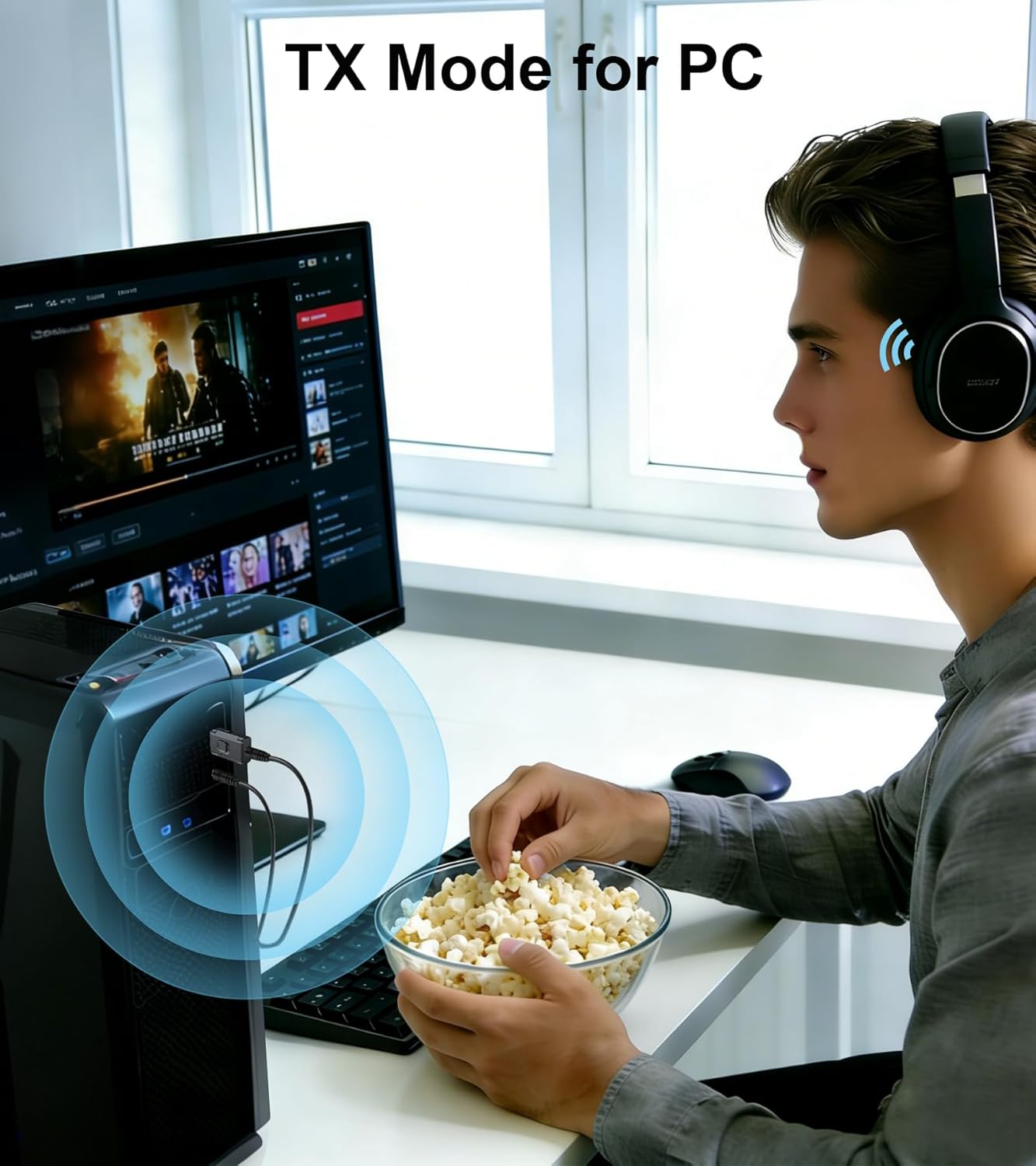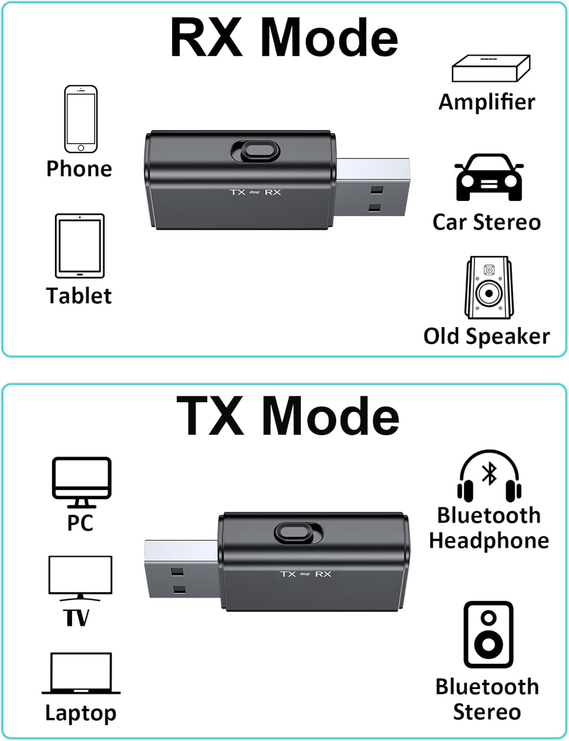 BLUETOOTH TRANSMITTER RECEIVER: ✅In TX mode, the USB Bluetooth transmitter allows you to stream audio from your PC, TV, tablet, MP3, MP4 player, and more to your Bluetooth headphones. ✅In RX mode, the aux Bluetooth adapter enables you to send audio to car or home stereo via your smartphone and tablet.