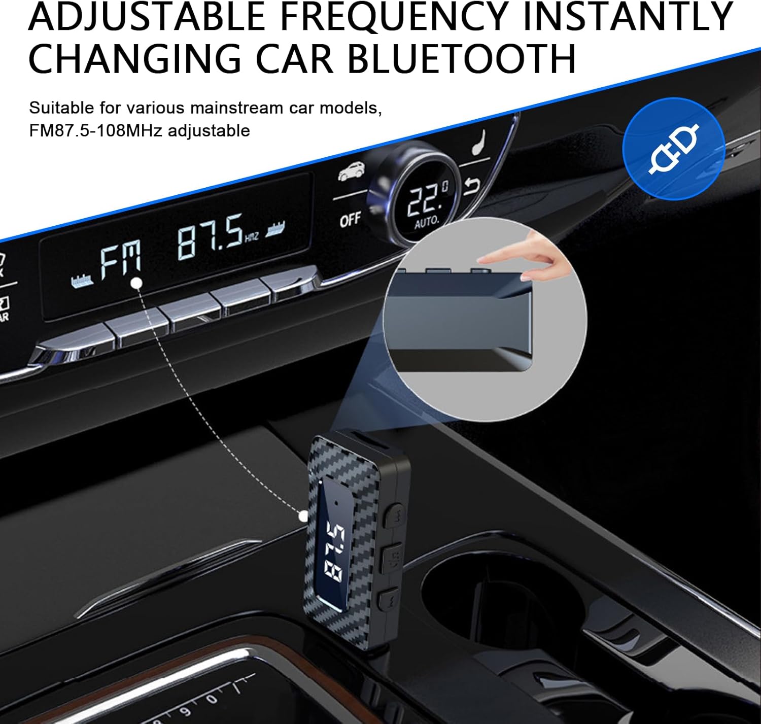 This product does not work. The device comes on when you plug it in and the frequency flashes, but I can not change frequency or connect with Bluetooth