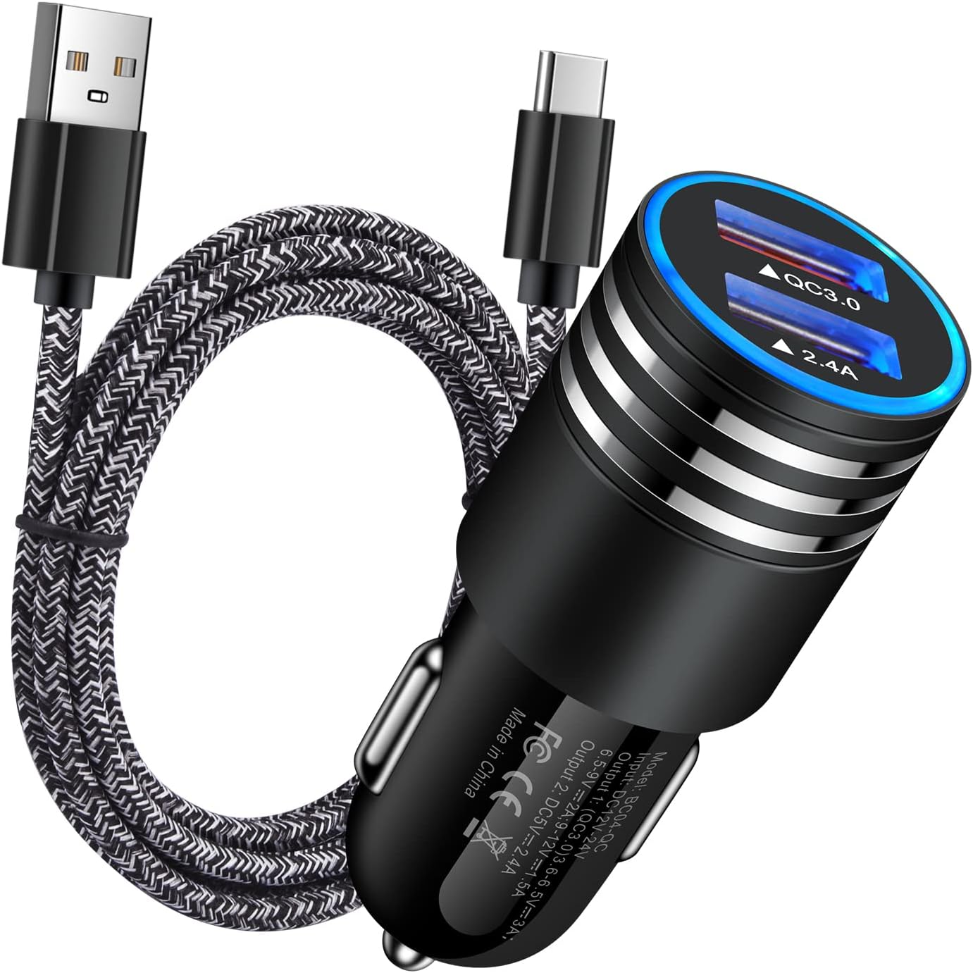 What You Get: 1-Pack Quick Charge 3.0 + 2.4A Dual Port USB Rapid Car Charger, 1-Pack USB Type C Fast Charging Cord 6ft. A perfect usb car fast charger accessory for travel.