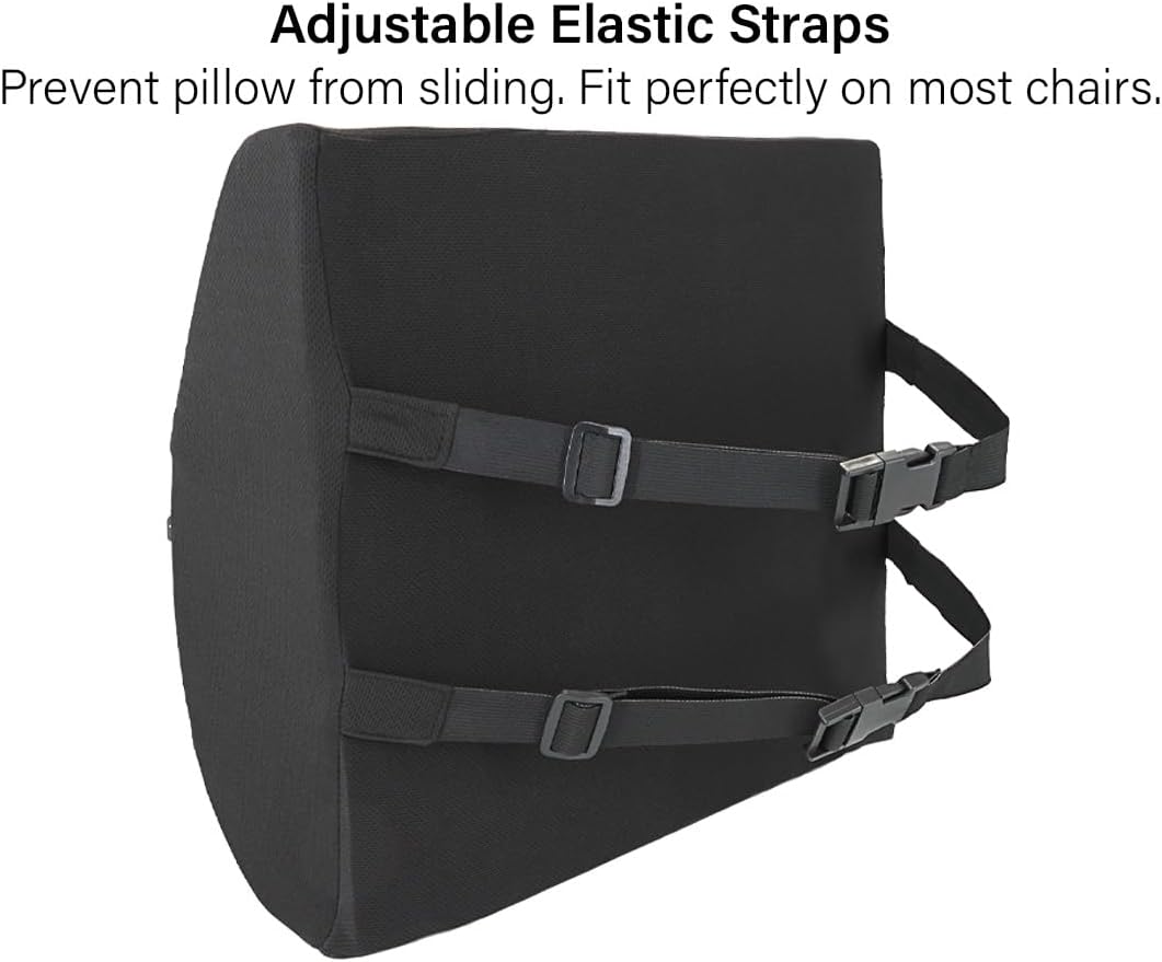 Durable & Versatile Design – The lumbar support pillow includes an elastic strap to securely anchor it to chairs. Use it with office chairs, car seats, wheelchairs, and more.