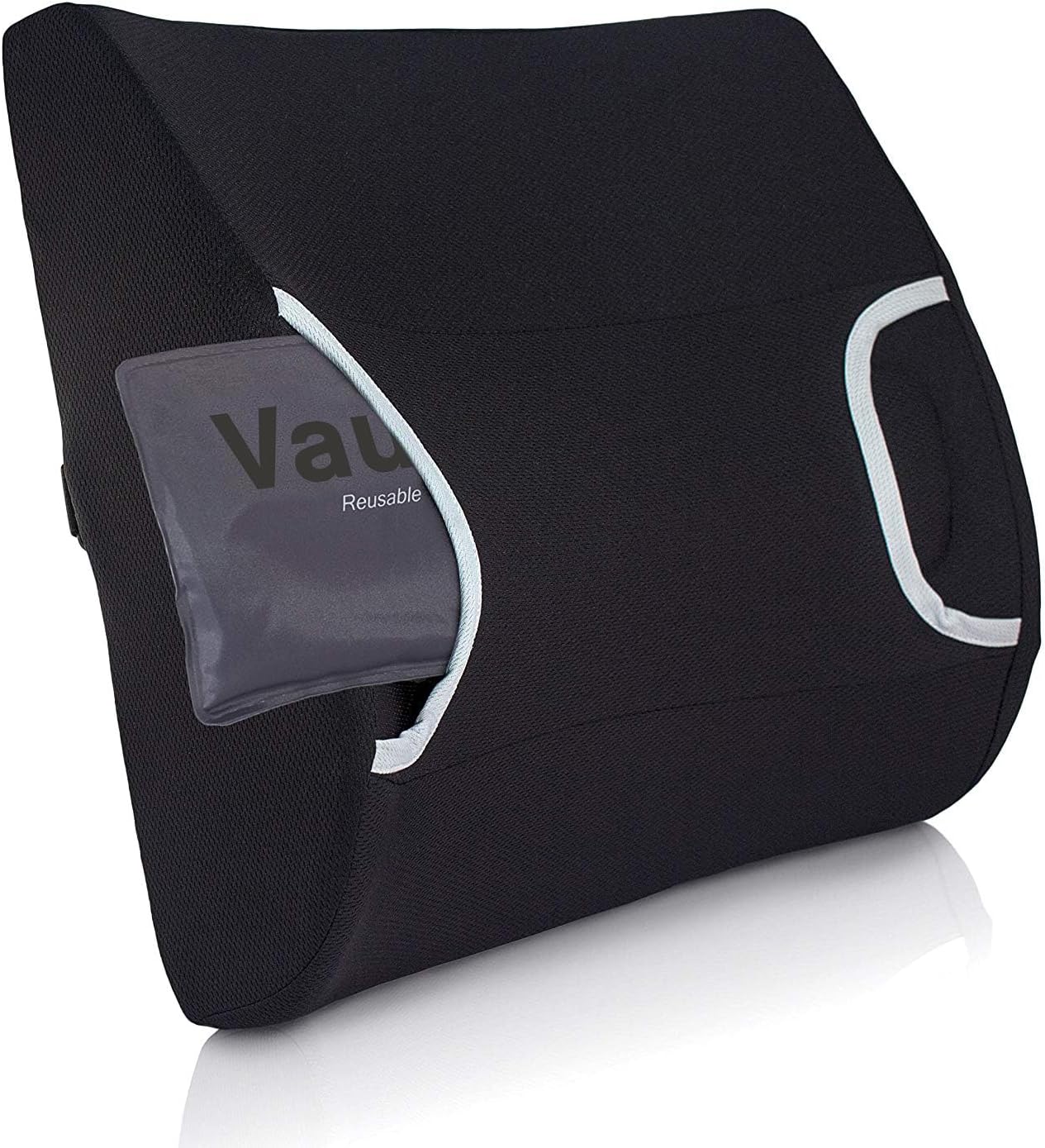 Made with premium contoured molded foam, the Vaunn Medical Lumbar Back Support Cushion helps by promoting proper sitting posture. It works effectively by reducing fatigue, soreness and pressure on lower back caused by long hours of sitting. The Vaunn Medical Lumbar Back Support Cushion includes an optional padded insert for added comfort. If you are suffering from back pressure, discomfort or bad posture from extended hours of sitting, you will like what our cushion can do for you. The ergonomically designed Vaunn Medical Lumbar Back Support cushion will bring comfort to your office chair, car seat, air plane seat, wheelchair or rocking chair.