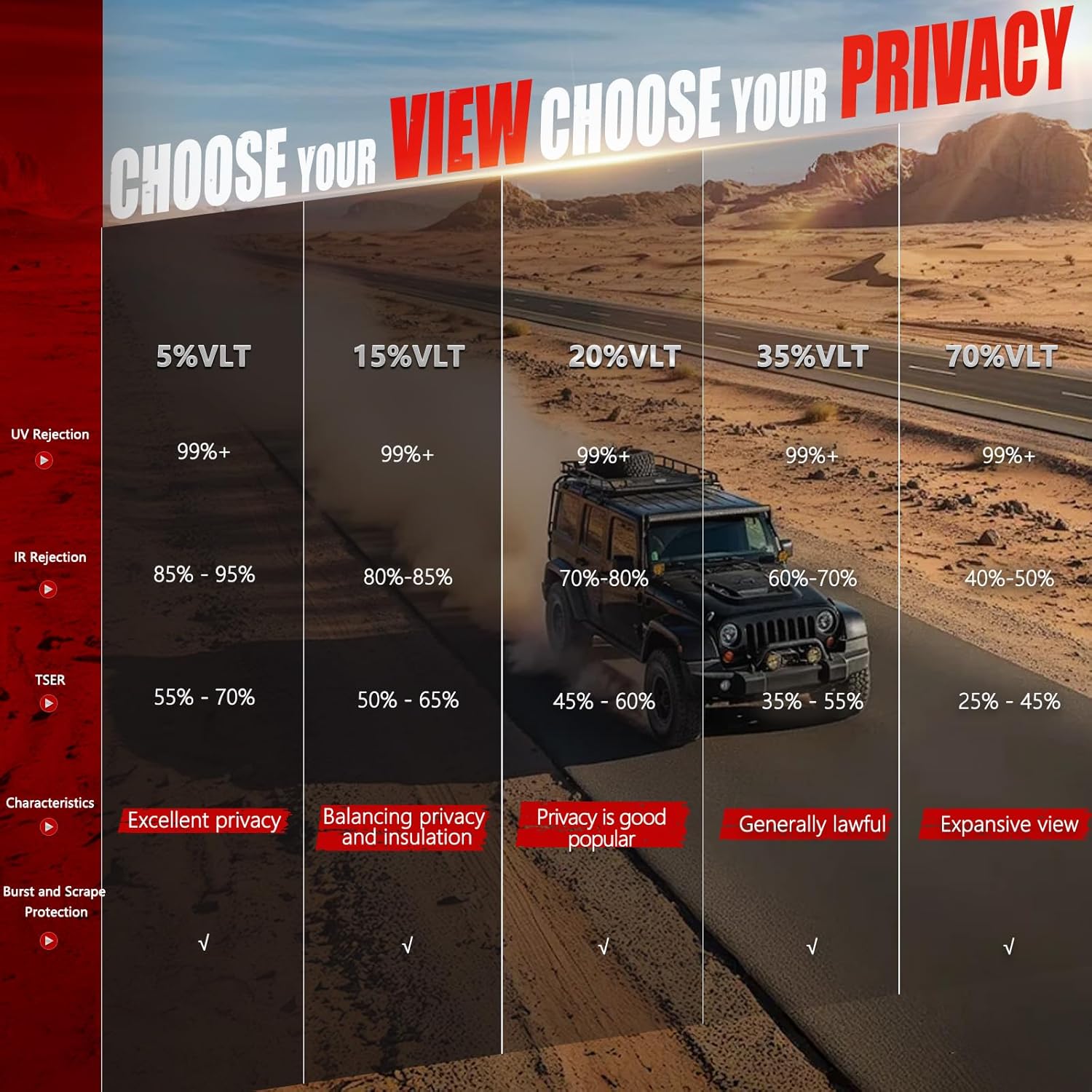 Enhanced Safety & Scratch Resistance: Constructed with premium nano-ceramic materials, the film enhances window strength, resists scratches, and helps hold glass together in case of impact for a safer drive