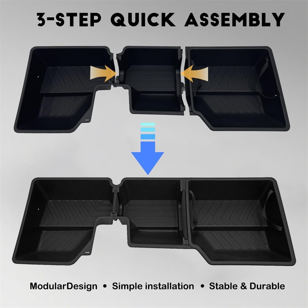 3-Minute Installation:Comes with Screws and screwdrivers. Simply slide the storage box under seat, align with factory holes, and pass the strap through the hole – no need to remove seats.