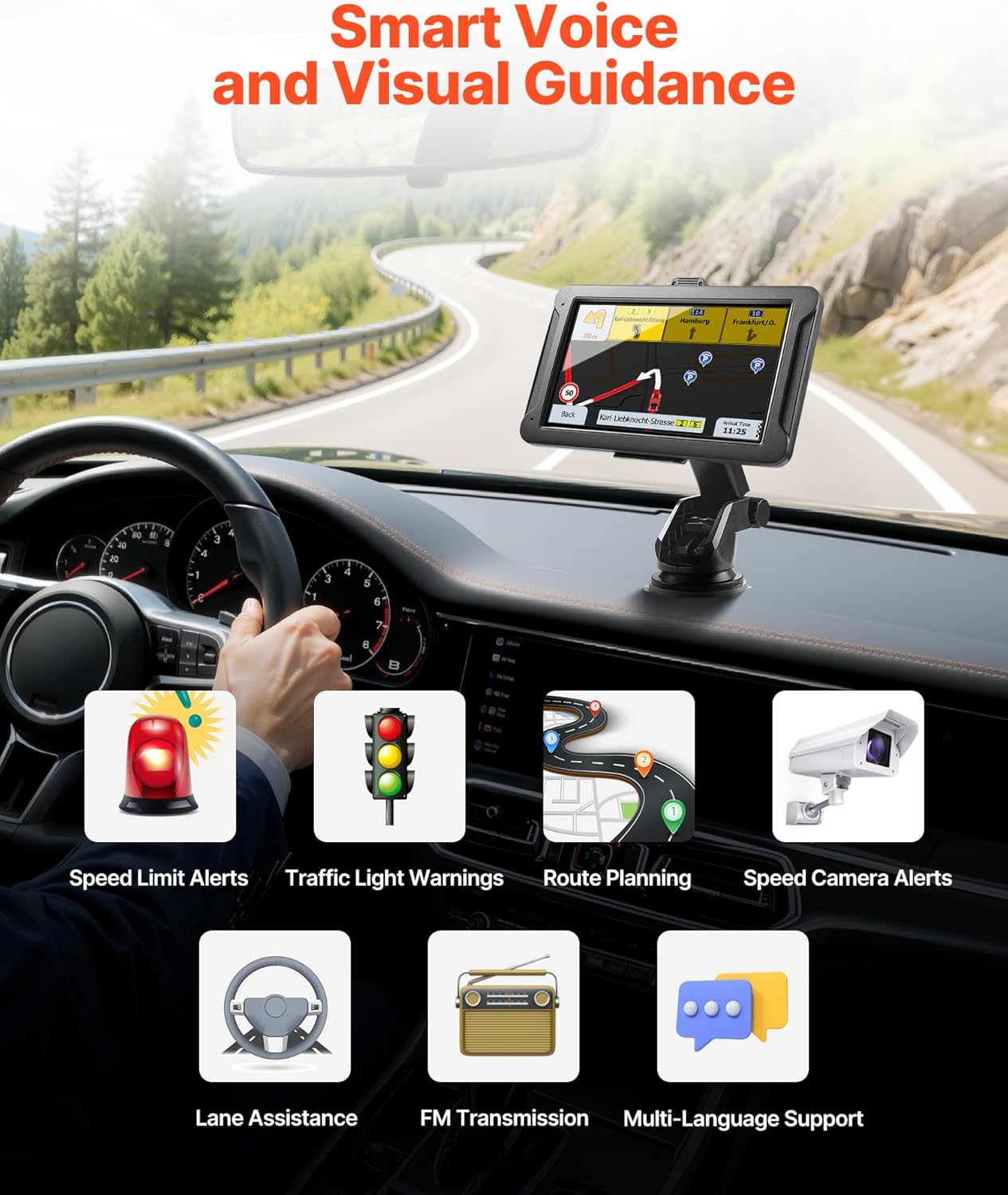 Accurate Navigation: The GPS for trucks features overspeed alerts, speed camera and traffic light warnings to help you avoid fines. Built-in dash cam and lane assist keep you secure. Clear multiple languages voice guidance is ideal for long trips