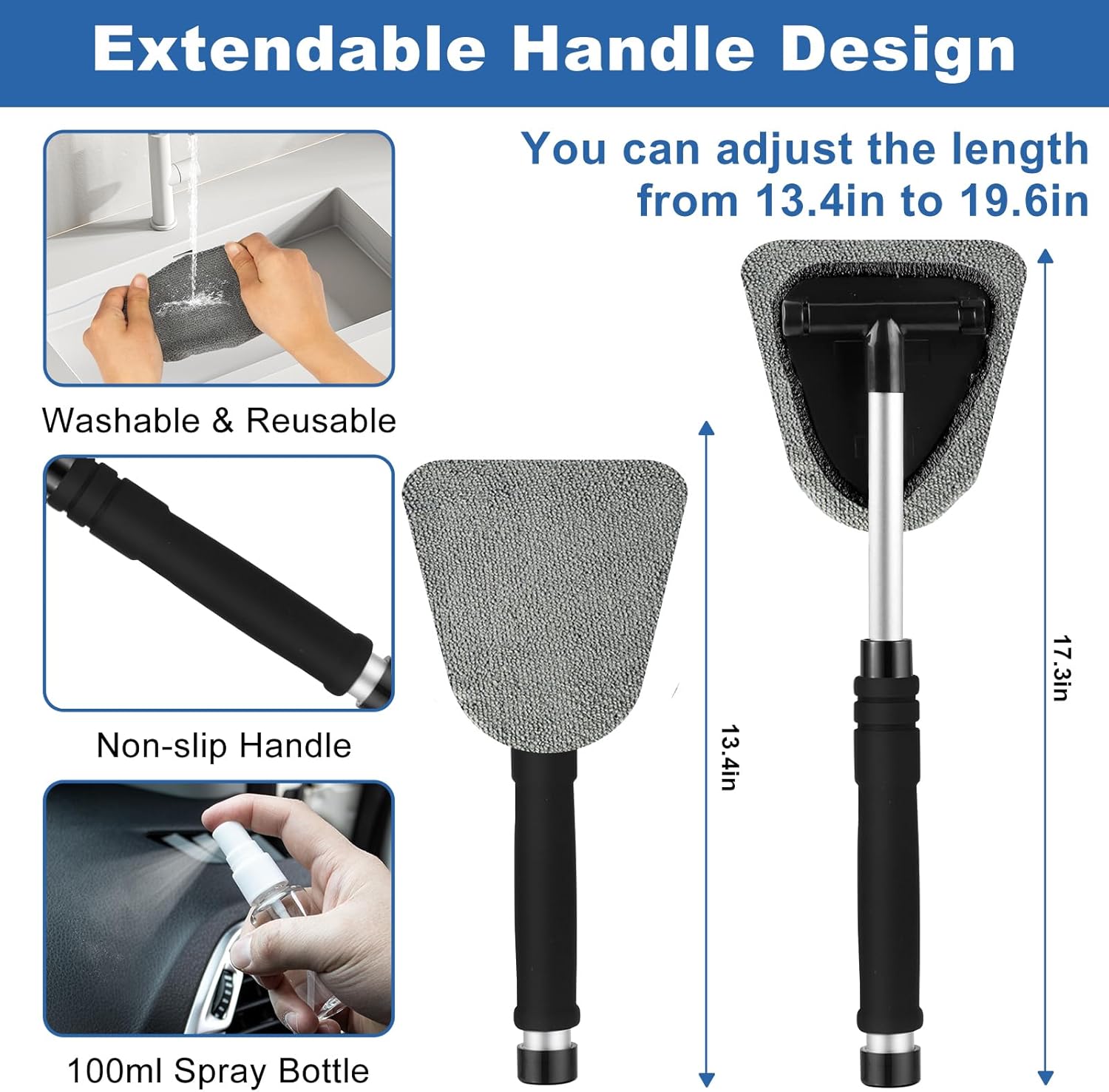 Windshield Cleaner: The Windshield Cleaner features an extendable handle with a 180°swivel head. The design allows the tool to fully conform to the glass surface and easily remove dust and dirt from hard-to-reach areas. Comes with 2 washable microfiber pads for streak-free glass cleaning. Cost-effective design ensures long-term use on automotive windows/mirrors