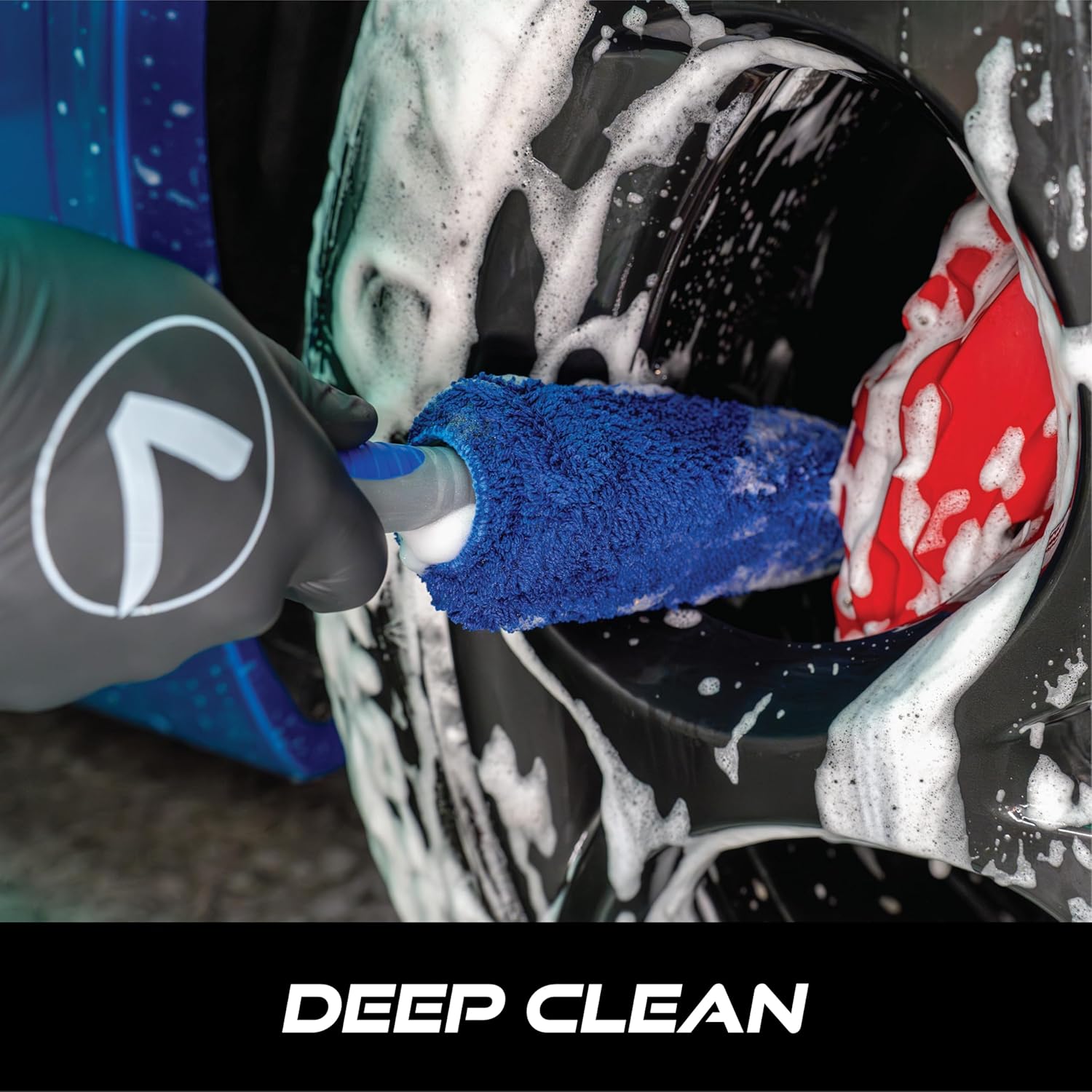Watch the wheel wand reach deep into the wheel barrel to gently and safely loosen dirt, brake dust, and grime. The soft microfiber and foam compress to get into tight spots for a complete wheel cleaning.