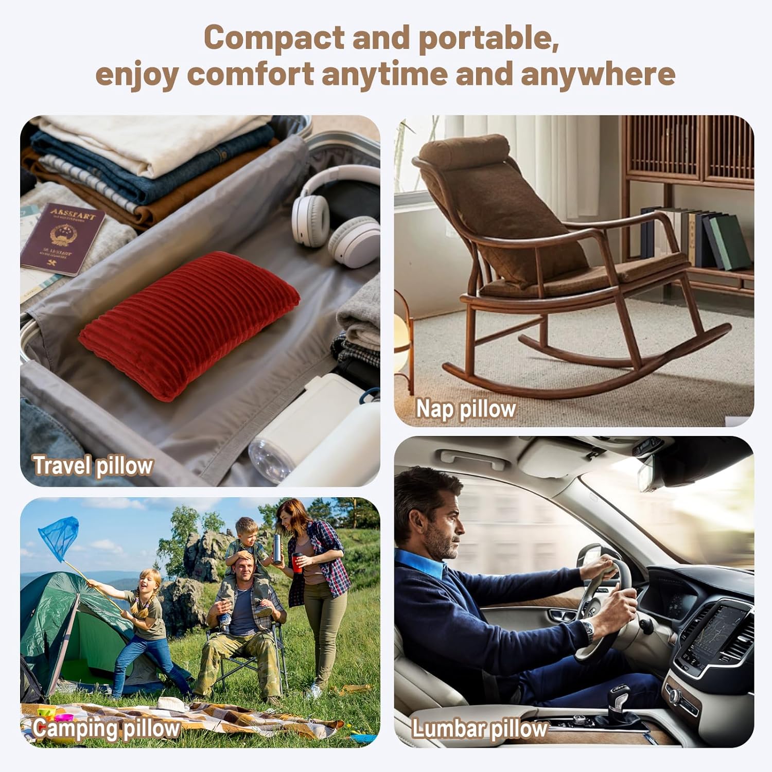 Compact And Portable: Whether used as a travel pillow, camping pillow or office rest pillow, this pillow is a perfect companion choice, it takes up minimal space and is highly convenient to carry, making your life comfortable anytime, anywhere