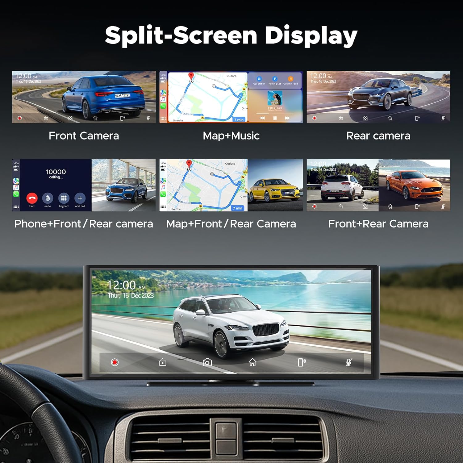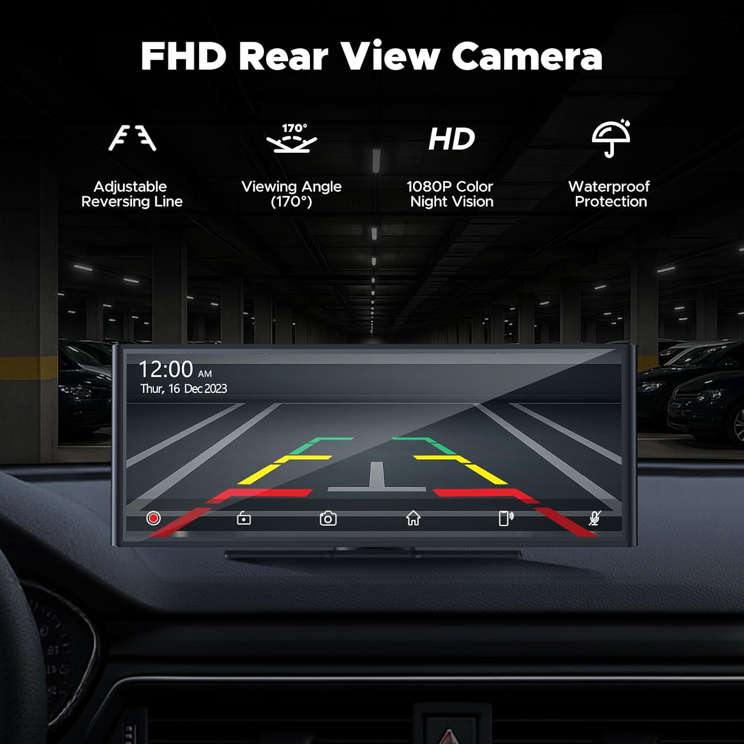 【1080P Rear Cam】When you shift into reverse, the display instantly switches to a live rear view, clearly showing obstacles, pedestrians, and curbs to help prevent scratches and bumps. No surprises, just smooth and safe parking