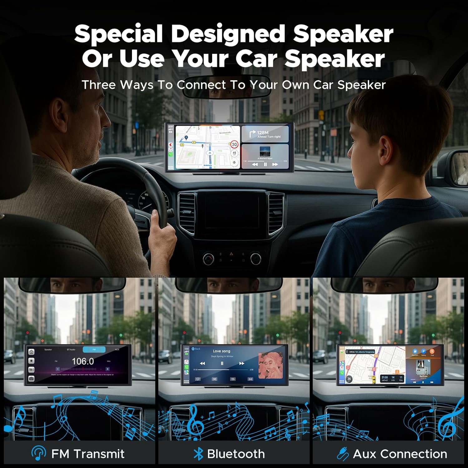 【Mirror Link & Auto-Dimming Display】Share videos, maps, or photos directly from your phone to the big screen using AirPlay or Android Cast. Plus, the built-in light sensor automatically adjusts screen brightness day or night—so you get perfect visibility without the glare. No squinting, no distractions—just comfortable and clear viewing