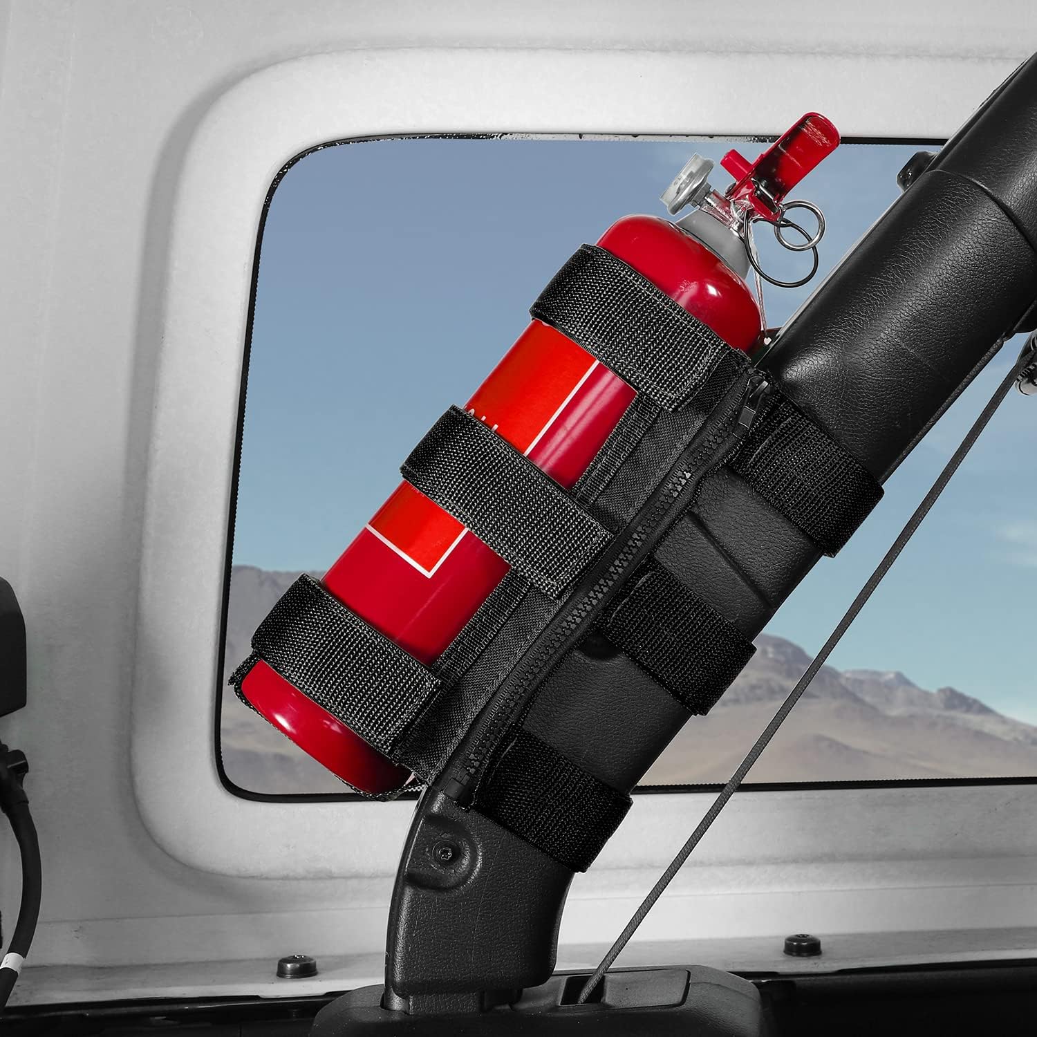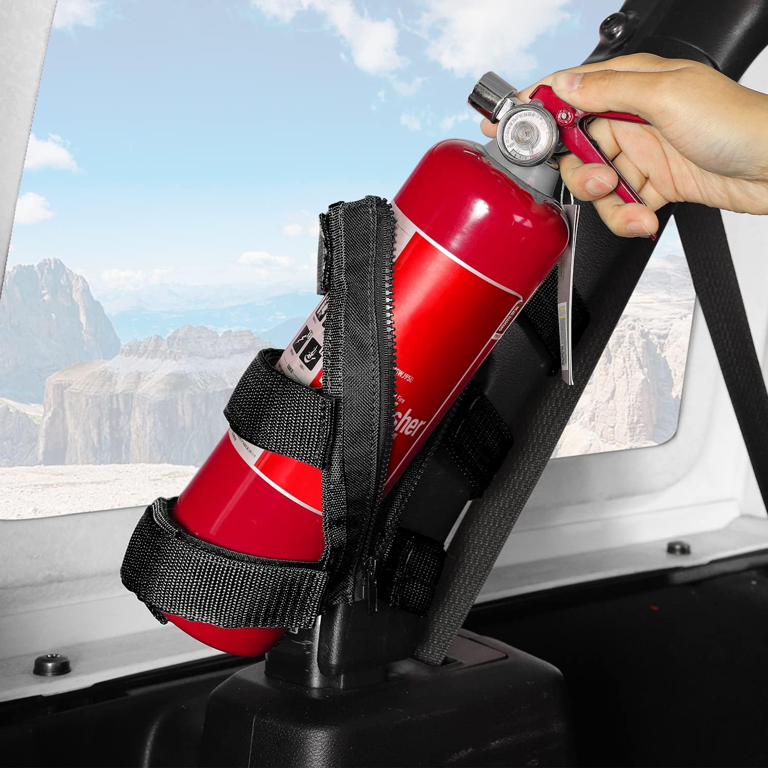 Voodonala Adjustable Roll Bar Fire Extinguisher Mount Holder 3 lb for Jeep Wrangler Unlimited CJ YJ LJ TJ JK JKU JL JLU 4XE,(Black,with Quick disassembly Zipper)