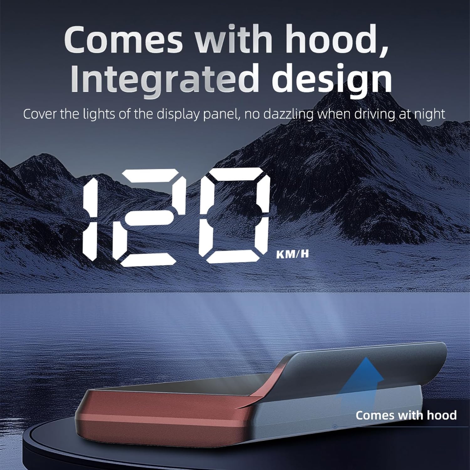 3. Smart display function with automatic brightness adjustment for daytime/nighttime driving. Large font for easy-to-read speed projection. Anti-glare coating ensures clear visibility. Compact design fits any dashboard.